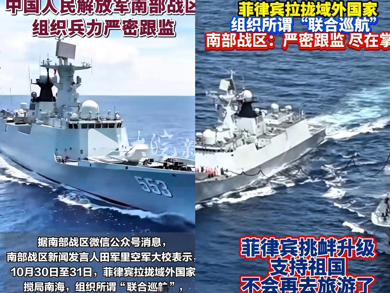 菲律宾的骚操作, 南部战区一句话戳破把戏! 真当南海是想来就来的地方!菲律宾拉着域外国家搞所谓“联合巡航”,看着阵仗挺大,说白了就是找人壮胆的挑衅活儿。 南部战区直接点破了——菲才是真正的搅局者、稳定破坏者。别以为拉上外人就能唬住谁,战机舰艇早跟上了,一举一动都在掌握里。不服来战!! 菲律宾挑衅 你觉得菲律宾在南海的行动会升级吗 菲律宾南海策略
