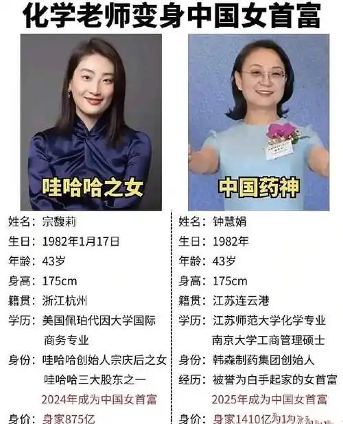 化学老师出身的她,凭啥成为中国最富有的女人? 当64岁的钟慧娟以1410亿元身家登上2025胡润女首富宝座时,无数人发出灵魂拷问:一个曾握粉笔的中学化学老师,凭什么在高门槛的医药圈杀出重围?答案藏在她三十年逆袭路上的每一个选择里,藏在那些不为人知的坚持与魄力中。 1995年的连云港,没人看好钟慧娟的决定。彼时她已在中学讲台稳站13年,捧着人人羡慕的"铁饭碗",却要辞职接手丈夫孙飘扬无暇顾及的小药厂——10余名员工、1个产品,办公挤在破旧平房,连工人都要自己招来手把手教 。"一个教书的懂什么生意?"流言蜚语里,她把家安进办公室,白天挤公交跑市场,晚上啃冷馒头改实验数据,硬是把有限资金全砸进仪器设备。这种"把工厂灯一直亮着"的执念,让1997年推出的"美丰"第一年就卖了3000万,硬生生在医药市场撕开一道口子。 最让人佩服的不是起步的狠劲,而是转型的眼光。当同行都在靠仿制药赚快钱时,化学老师出身的她比谁都懂"技术才是护城河"。2015年仿制药政策收紧,她果断砍掉20个仿制药项目,逆势砸10亿攻创新药,团队熬了无数通宵攻坚肺癌靶向药,最终拿出中国首个原研三代EGFR-TKI药品"阿美乐" 。到2025年,翰森制药创新药营收占比飙至82.7%,这组数字背后是她"仿创结合、以创为主"的清醒战略。 有人说她靠丈夫的资源,可懂行的人都知道,医药行业从不是"拼关系"就能赢。为摆脱"夫妻店"标签,她主动清理股权引入高瓴资本,2019年带翰森制药港交所上市,首日市值破千亿港元 ;当集采政策冲击行业,她早已完成创新药布局,踩着行业爆发的红利实现市值翻倍。更难得的是,即便年薪超千万、身家过千亿,她仍每天早八晚十一泡在公司,手上永远拿着记满数据的笔记本 。 从讲台粉笔到资本巅峰,钟慧娟的逆袭从不是"嫁得好"的童话,而是"做得强"的写实。她证明普通人的成功从不需要等风口,而是在认准的赛道上深耕——敢放下铁饭碗的勇气、肯死磕技术的韧劲、能踩准节奏的智慧,这才是她从化学老师蜕变为"医药女王"的真正密码。 这样的逆袭,你觉得是偶然吗?欢迎在评论区聊聊你的看法!女性首富 女亿万富豪