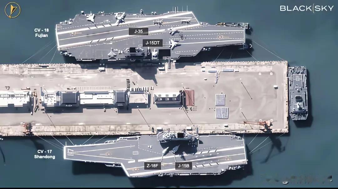 福建舰的大日子,真的要来了! 最新卫星照片传来重磅信号,超级航母“福建”舰的“大日子”或已经进入倒计时! 南海某军港,码头区域可见搭建的大型礼台、背景板等重要仪式的布置现场,紧锣密鼓的推进。而飞行甲板上J-35、J-15DT、空警-600和直升机等各型舰载机整齐列阵。 福建舰甲板摆满战机,码头搭起红礼台,三航母时代真要来了 BlackSky公司最新传回的卫星照片,把所有军迷的目光都钉在了南海某军港——福建舰的甲板上,8架舰载机正以战斗姿态整齐列阵,而码头边突然出现的红色观礼台,更是直白地宣告:这艘国产超级航母的“大日子”已近在眼前。 熟悉海军惯例的人都清楚,码头搭观礼台从来不是随意之举。从辽宁舰到山东舰,每艘航母入列前,都会在停靠的码头搭建类似设施,用于举行授旗、命名、升旗等仪式,有时还会邀请舰艇命名地的党政代表、船厂建设者共同见证。 这次福建舰旁的红色区块格外醒目,周边散落的白点疑似是准备就绪的礼宾座椅,连与码头相连的登舰楼梯都已搭在降下的前升降机上,所有细节都在指向一场盛大仪式的临近。 更让人振奋的是甲板上的“阵容”:2架歼-35隐身战斗机、2架歼-15T重型战机、2架空警-600预警机,再配上2架直-9直升机,这可不是简单的陈列,而是一套完整的海上作战体系雏形。 歼-35负责突破敌方防空网实施隐身突击,歼-15T凭借载弹量大的优势担当火力输出主力,空警-600则能把探测范围延伸数百公里,充当整个编队的“空中大脑”。这种组合亮相,意味着福建舰的舰载机适配与协同训练已进入收尾阶段。 作为我国首艘配备电磁弹射器的航母,福建舰的每一步进展都备受关注。9月10日,它开启第九次海试,12日穿越台湾海峡,16日就密集开展舰载机起降测试,短短几天内完成了从航行到实战科目的跨越。 电磁弹射技术的优势在测试中展现得淋漓尽致,相比传统滑跃起飞,它能让舰载机满油满弹升空,作战半径和打击力直接翻倍,而且从冷启动到准备就绪只需15分钟,极大提升了战机出动效率。 有意思的是,福建舰南下后曾多次靠泊三亚军港,舰载机起降训练也从未间断,不少军迷早就猜测它已具备实质战力。毕竟国际上有英美航母“先服役再测试”的先例,而福建舰显然选择了更稳妥的“完成测试再办仪式”的路径,把所有技术细节打磨到位才正式亮相。 如今连舰艏两侧都出现了疑似涂刷舷号的工作船,“CV-18”的标识很快就将清晰可见,服役的最后一道程序正在推进。 码头另一侧,服役多年的山东舰甲板略显空旷,与福建舰的热闹形成鲜明对比。军迷们已经开始畅想三航母时代的图景:三艘航母轮换值守,能确保随时有航母处于战备状态,远海护卫能力将实现质的飞跃,西太平洋的战略格局也将因此重塑。甚至有人关注到山东舰的后续升级,猜测它何时能适配歼-35,形成与福建舰呼应的作战力量。 从下水到海试,从舰载机起降至观礼台搭建,福建舰的每一步都走得扎实。如今仪式筹备进入冲刺阶段,这艘国之重器距离正式入列只剩最后倒计时。 对此,你们有什么看法,欢迎评论留言~