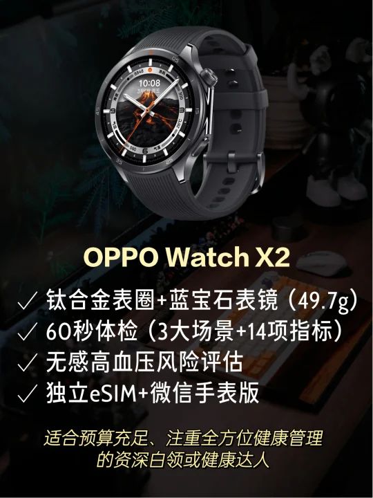 2、关注全面健康监测、喜欢大气圆表设计且预算充足的资深白领,选OPPO Watch X2