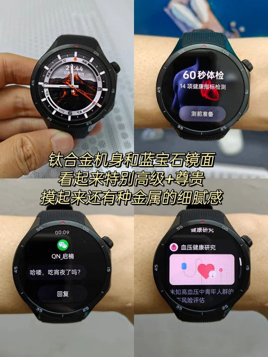 其次是OPPO Watch X2,堪称安卓表皇。1.5英寸LTPO钻石屏,峰值亮度2200 nit,阳光下屏幕也清晰可见;631 mAh大电池在全智能模式下约5天续航,长续航模式可达16天。钛金属表圈和蓝宝石表镜提升高端质感。功能上,它支持eSIM独立通话和微信手表版,更具备无感血压评估和60秒体检(覆盖3大场景、14项指标),全面守护健康。运动上包含两步路定制APP,可随时查看热力图/离线地图,户外运动手机没信号也能安心了。适合关注全面健康监测、喜欢大气圆表设计且预算充足的资深白领。