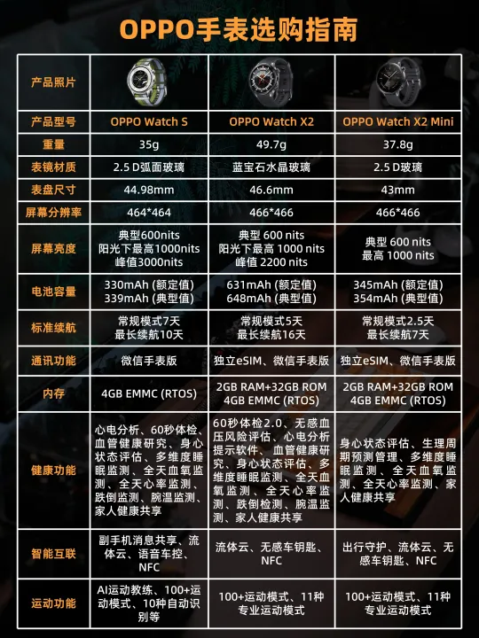 很多朋友经常问我,手表应该怎么选?今天就为大家介绍OPPO的三款智能手表:OPPO Watch S、OPPO Watch X2和OPPO Watch X2 Mini,它们覆盖不同价位和功能,能满足各种需求。