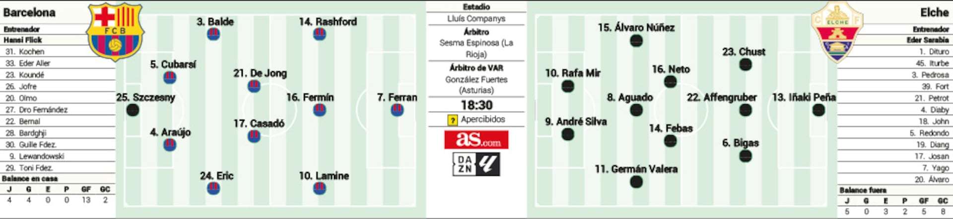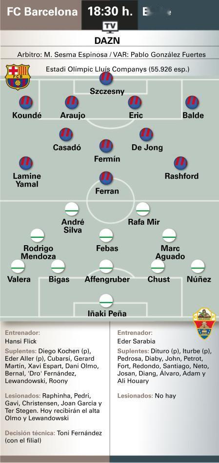 媒体预测巴萨VS埃尔切首发阵容。巴萨热点现场巴萨vs埃尔切