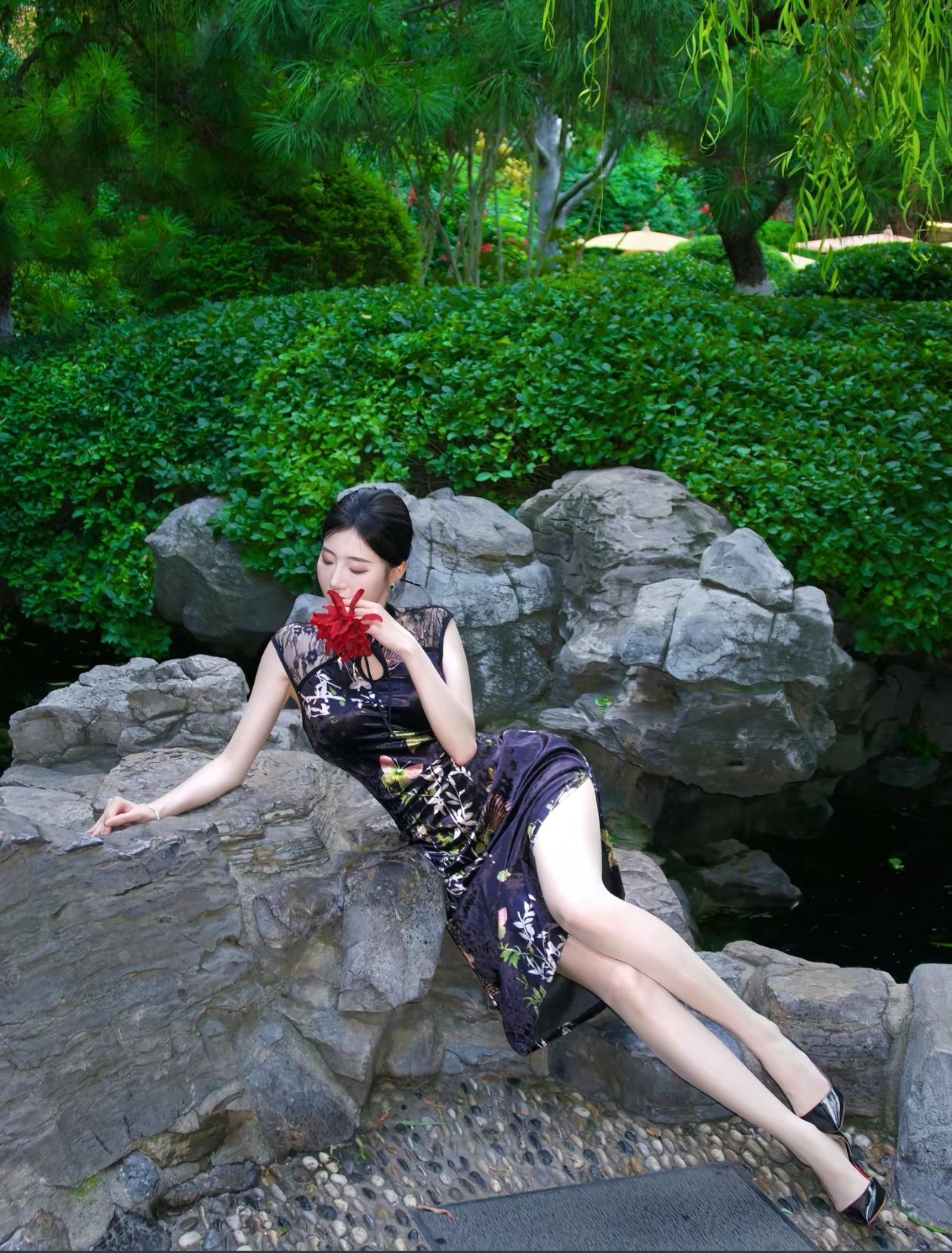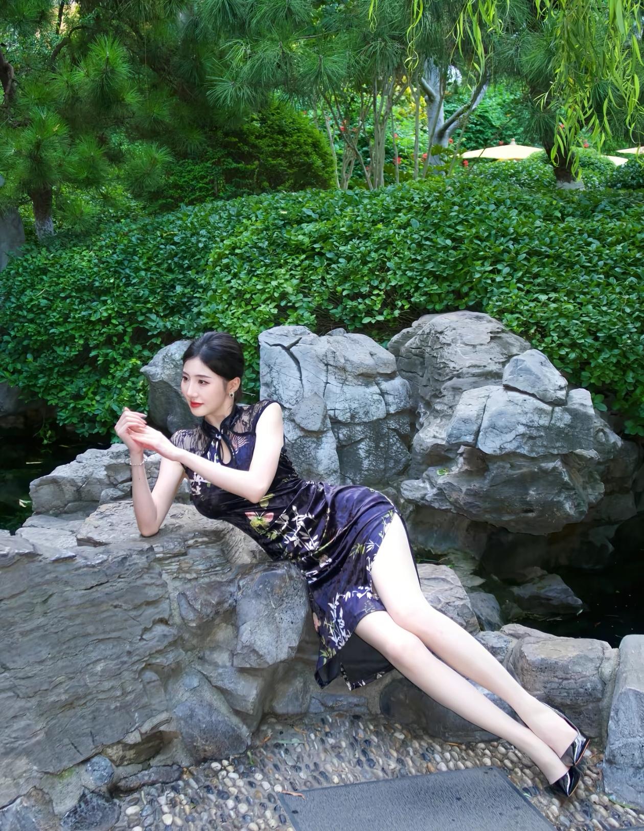 粉色开衫配绿色开衩裙,清新又显白,脚踩同色系人字拖,这配色和穿搭绝了,氛围感直接