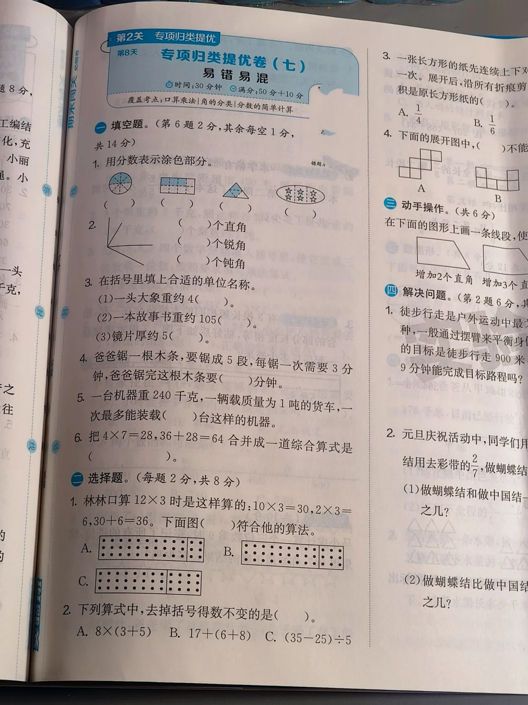 “同步教材重点,分层闯关进阶”,这本书完'全踩中了三年级数学期末复习的需求。