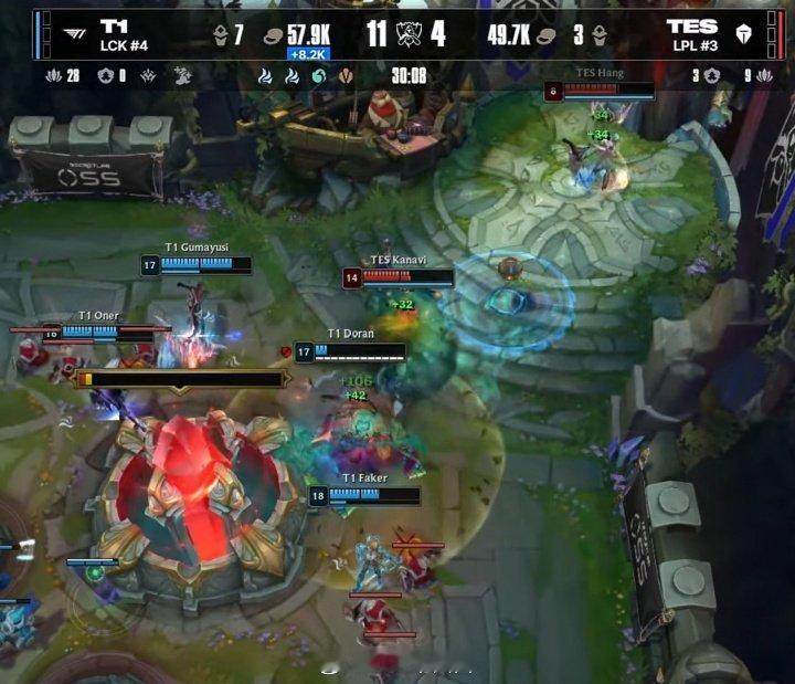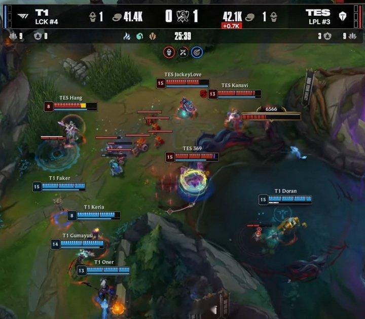 S15四强淘汰赛进行中,TES 0:1 T1。