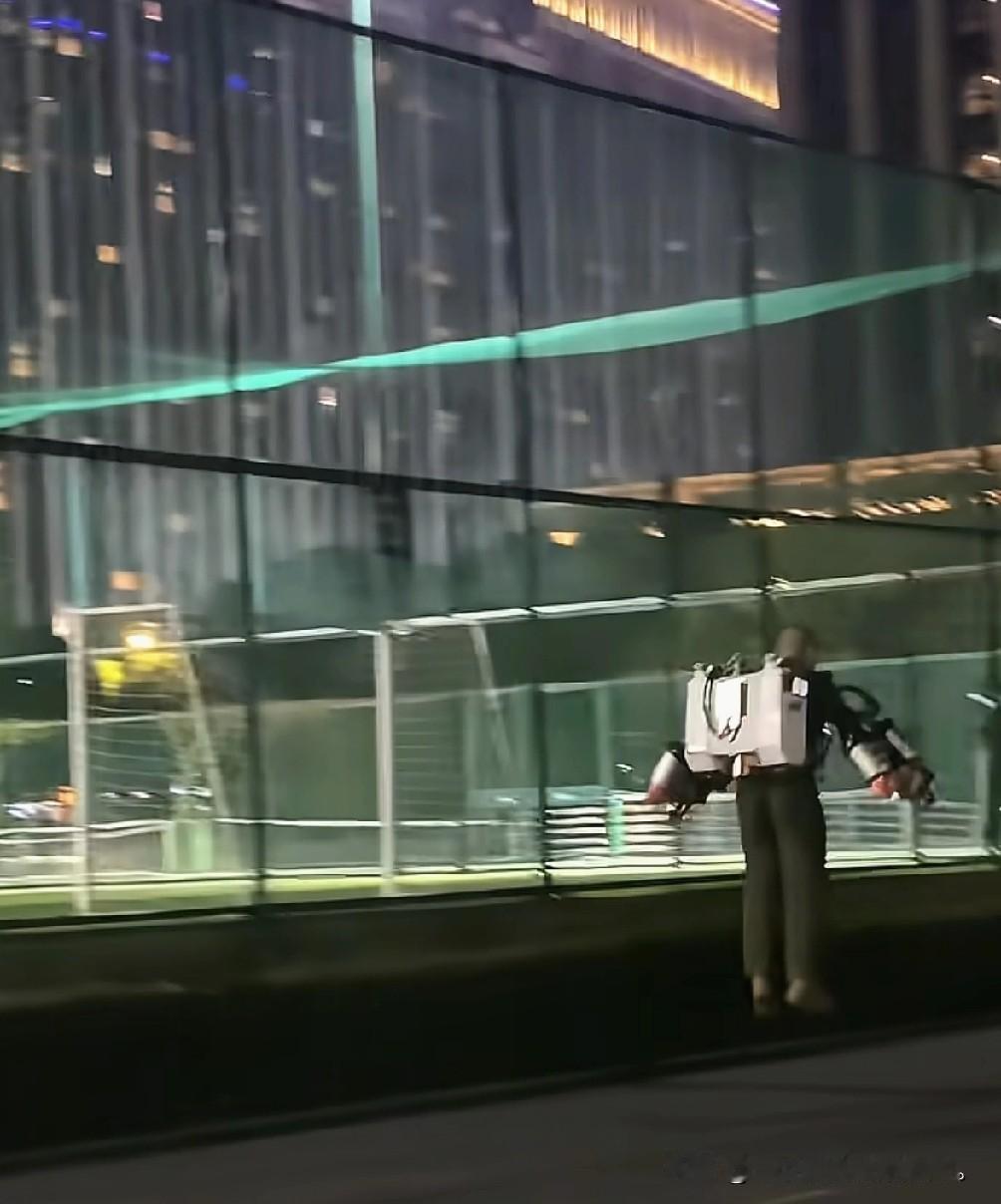 星爷的电影再次照进现实, 电影《美人鱼》郑总背着喷气式飞行衣, 这次浙江大学在完成了一个类似的装备,可以原地起飞,造型类似星爷电影的喷气式飞行衣。 有些区别的是,电影里的是喷气的,浙江大学的这个是喷火的,需要启动一会才能飞行。 这次的试飞在晚上进行,就是为了能够让同学们都有时间在围观,在学校的操场上也围满了看热闹的同学。 这样的飞行器背包,有5台发动机组成,背后有一台大推力发动机,发动机两侧是油箱,每个手上有二台小发动机。 飞行控制的方法也很简单,使用人员通过前后摆动手臂也控制飞行器飞行方向,夹紧或者展开手臂控制飞行的高度。 最牛的是所有的零件都是国产,这样就不怕被卡脖子了,最快时速可以达到100公里。 有种火箭飞行兵的感觉,第一代还是有种笨重的感觉,不是很灵活,如果继续改进,以后是不是可以用于消防员高层救火,快速又方便。