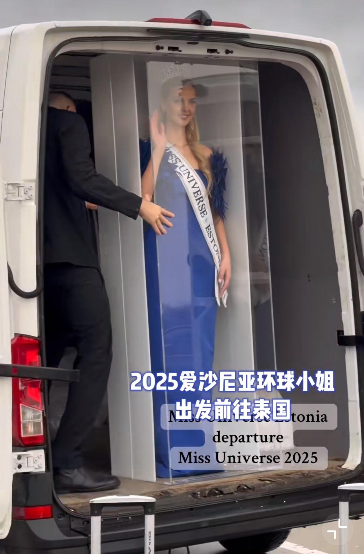 这也太夸张了吧,一定要这样吗? 2025年爱沙尼亚环球小姐 近日她准备坐飞机前往泰国,可这上飞机的操作实在是让人看不明白,要不是看见她动,还以为是假人呢,人就这么站在一个展览柜子里,全程是其他人推着柜子走的,好好的一人硬是包装成了一个芭比娃娃…. 好奇她上了飞机是不是也一直待里面不出来呢…全程站到泰国[灵光一闪]