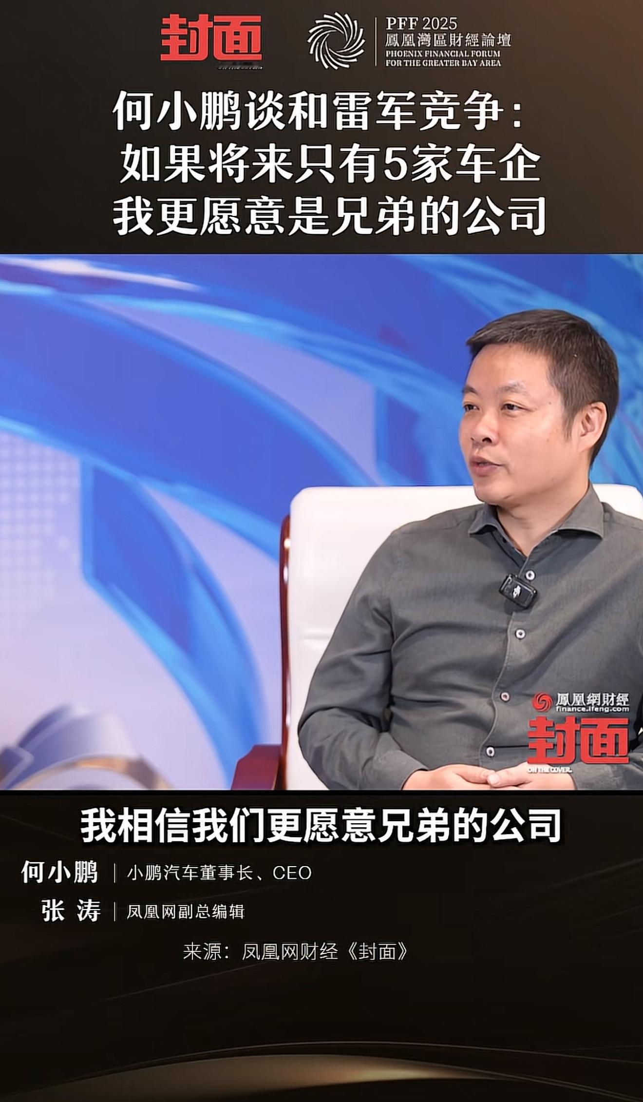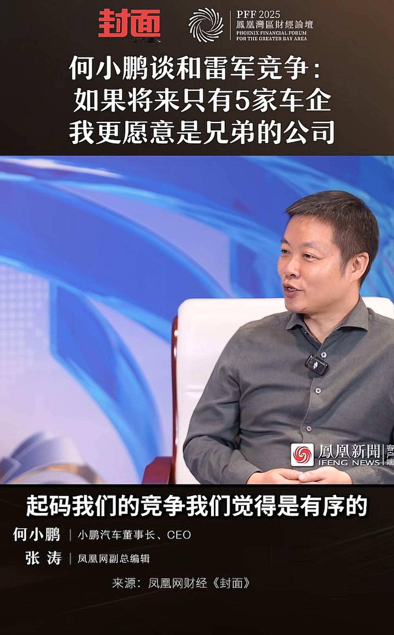 被问及全新小鹏P7与小米SU7的正面竞争关系,何小鹏回应:“如果将来行业最终只剩5家车企,我们更愿意是兄弟企业,毕竟我们之间的竞争,起码是良性有序的。