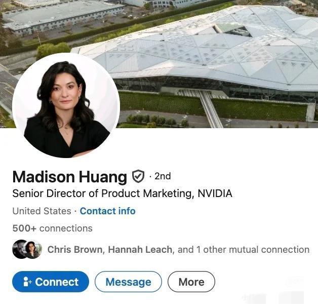 黄仁勋两子女都在英伟达工作。都追求了自己的爱好,但最终都决定在家族企业工作。 在加入英伟达之前,斯宾塞做了十年的摄影师和鸡尾酒吧老板。 麦迪逊曾在美国烹饪学院和蓝带厨艺学院接受培训,学习过糕点和葡萄酒,现在在英伟达从事产品工作。