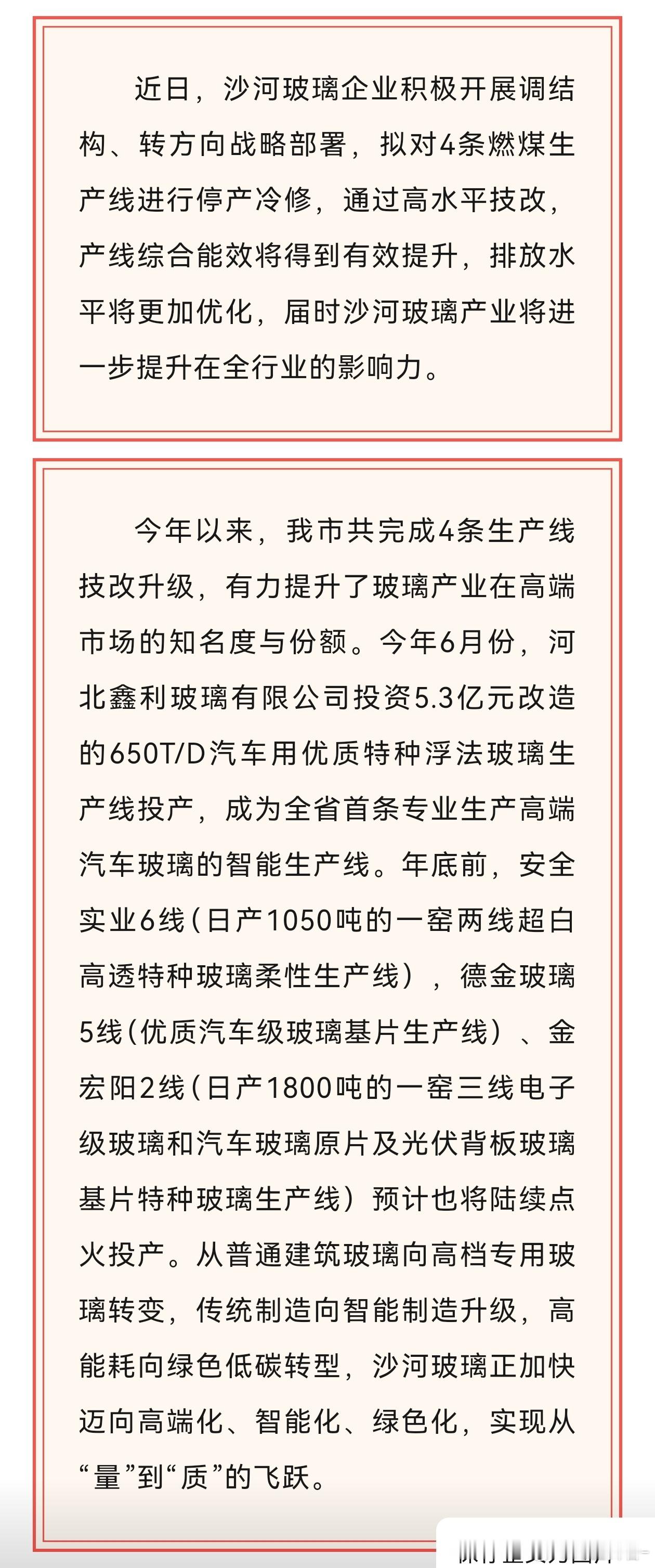 沙河玻璃产业主动求变,转型升级跑出加速度。期货