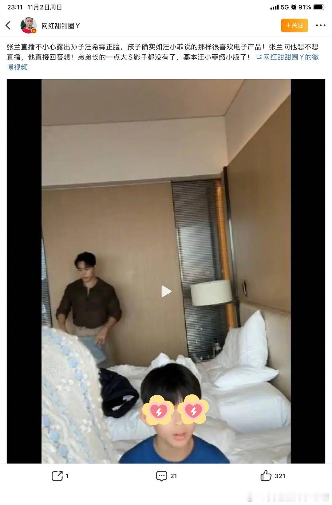 张兰直播不小心露出孙子汪希霖的正脸