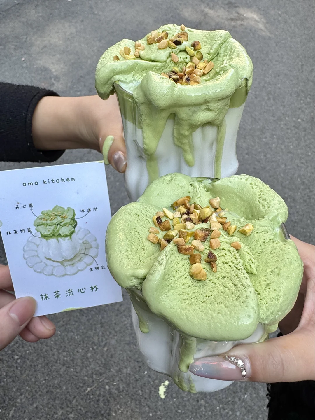 就在浙大这里!!和男朋友不知道吃什么就会来这里。。 抹茶流心杯⋯.我也吃到欣欣子同款[皱眉R]浓郁细腻的抹茶香味谁懂[哭惹R][哭惹R] 圣诞塔塔🎄圣诞树造型好精致!! 还有这个奶油泡菜辣年糕[色色R]真的好好吃!!糯叽叽的,满满的奶油顶底下是年糕!!! 熔岩鸡面包鸡、芝芝玉米泡菜饼、韩国打糕…每一个都很好吃!!!