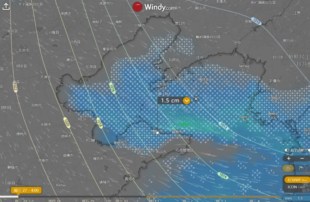 预计明天夜间起,半岛地区冷流雪逐渐拉开序幕,烟台中部和北部、威海北部地区有中到大雪局部暴雪,阵雪可能持续到本月底。
