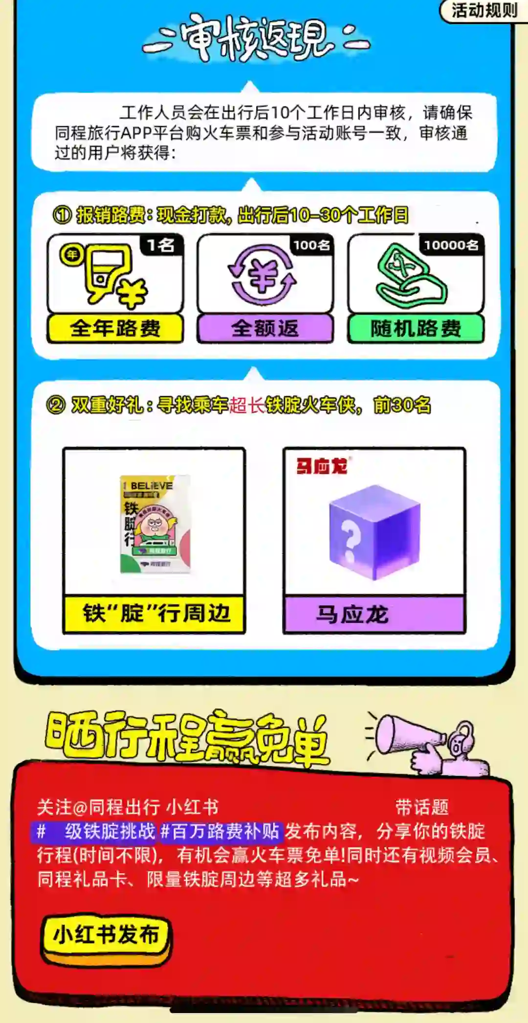 大家可以利用假期和周末选择火车出行!出行的时候记得参与这个活动,说不定你此次旅程的车费就全额报销了!