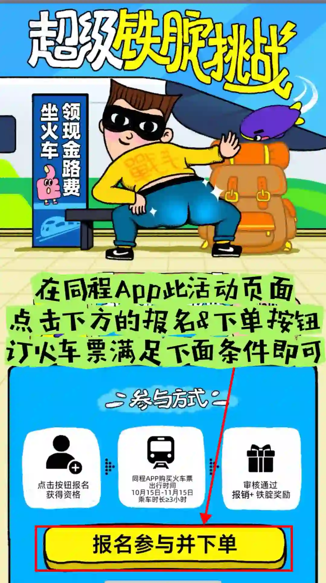 在同程旅行App活动页面点击报名并下单火车票即可参加(图3)
