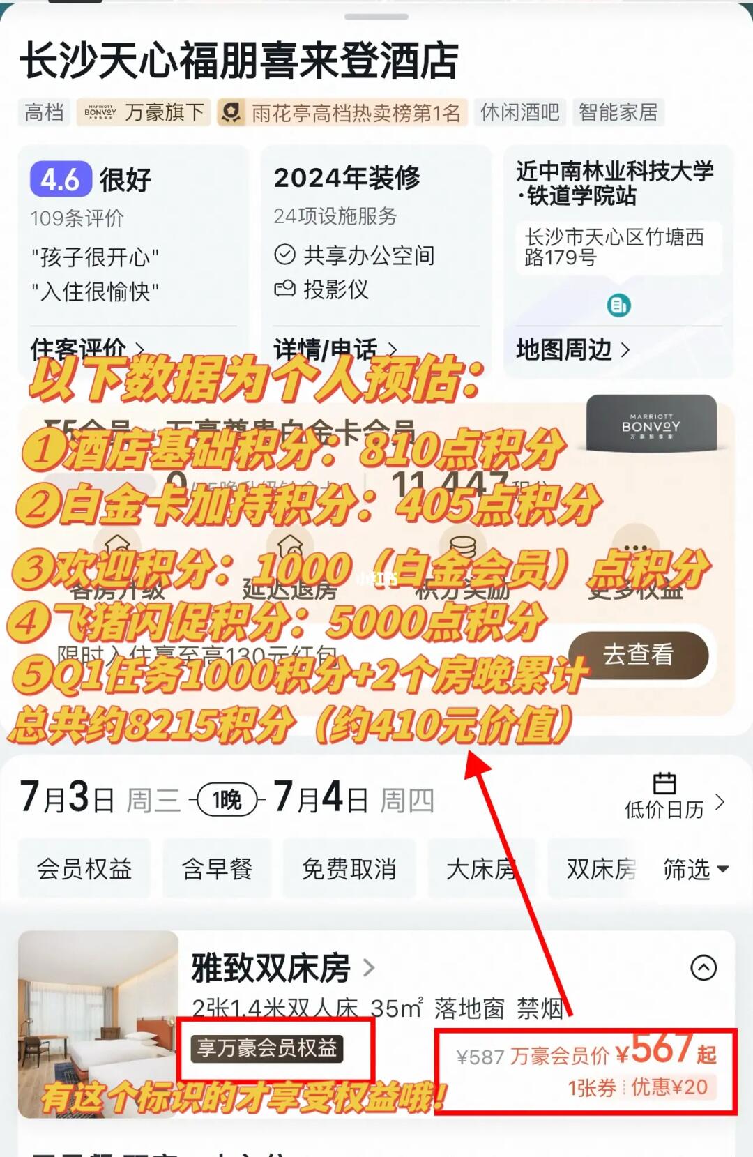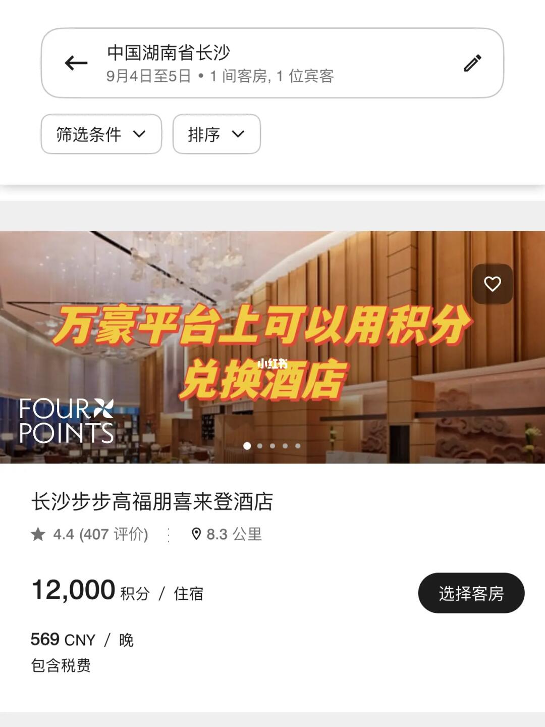 以【长沙天心喜来登酒店】为例,该酒店每晚song5000积分!每晚567r/晚(图4-5)