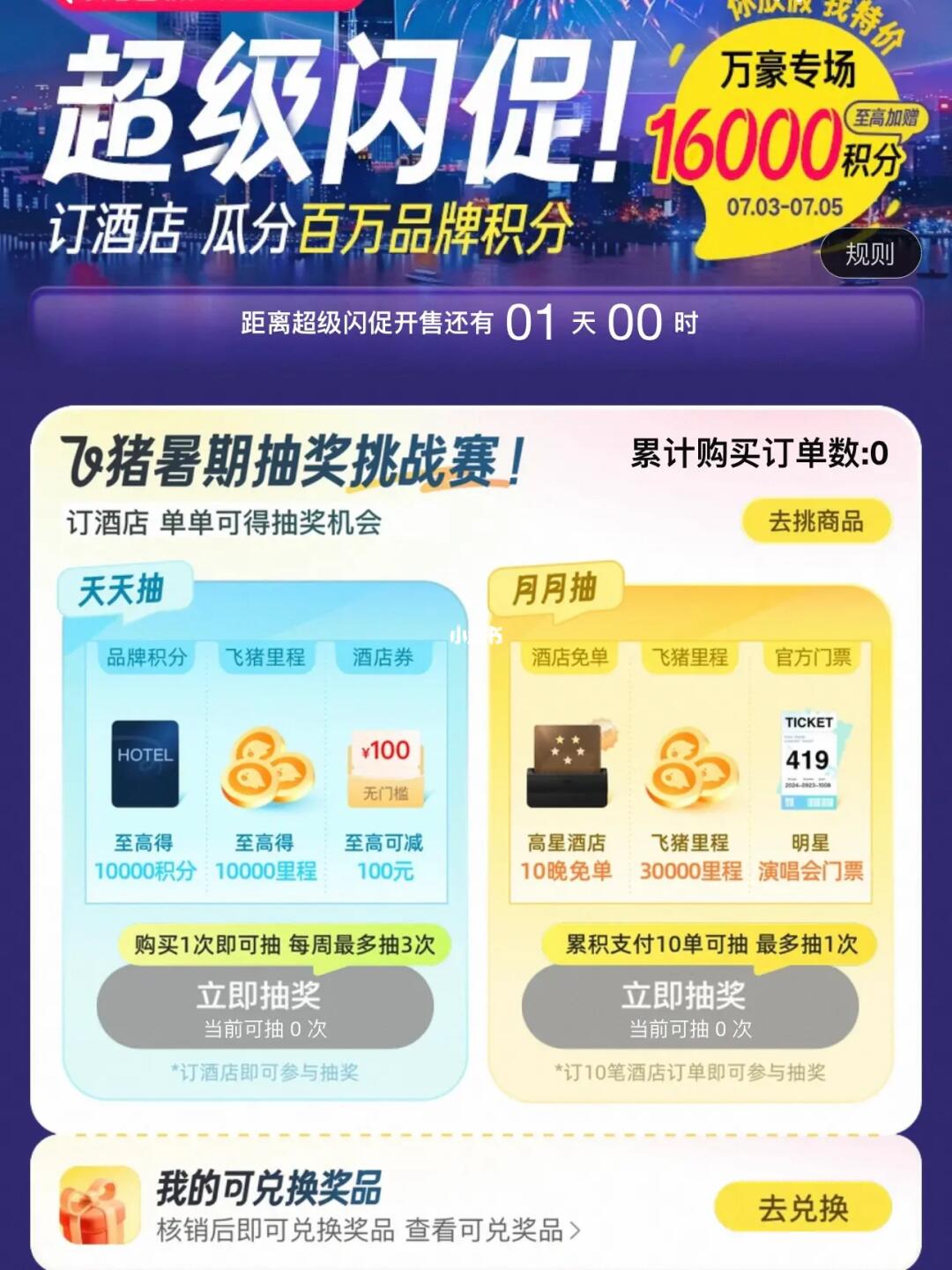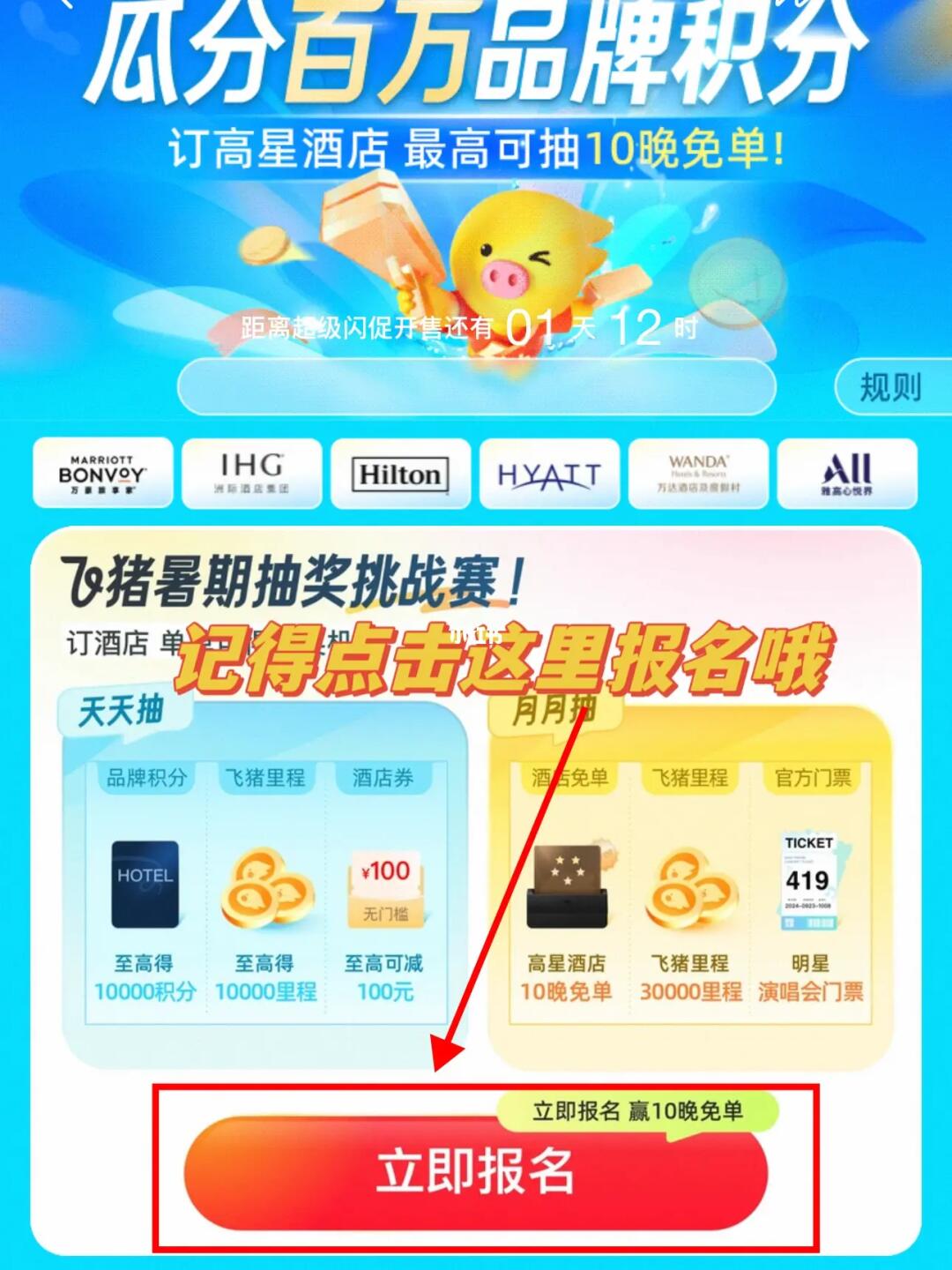 暑假挑战赛来了!飞🐷App订日历房可以参与挑战赛进行抽jiang,航空里程,酒店积分及🆓住宿都有!
