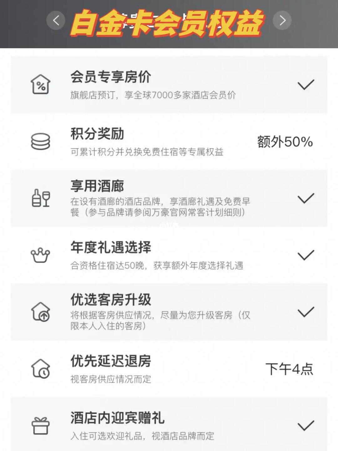 👉如果你是白金会员会获得:除了升级更高端房型外
