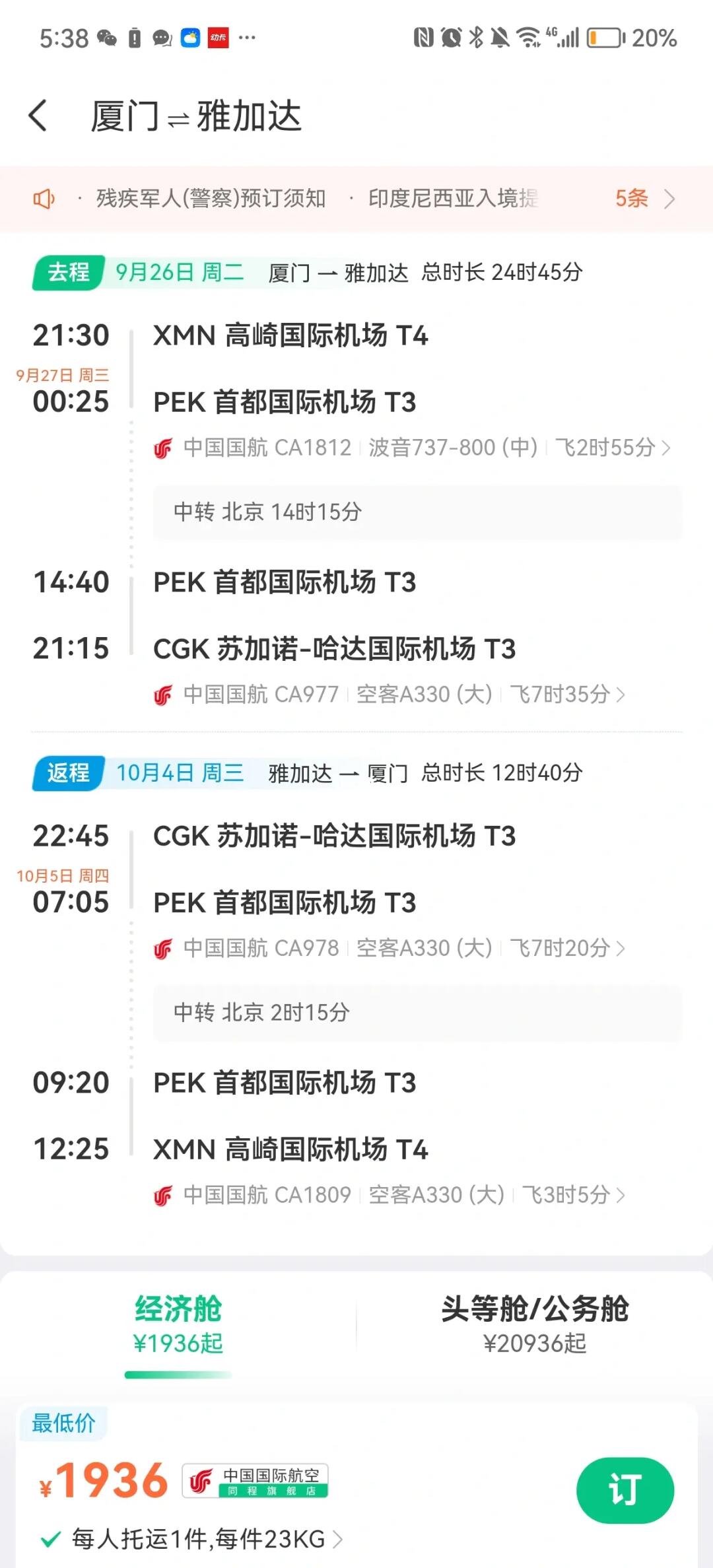 🌈我是发光体,关注我,带你看世界,不定期分享旅行攻略及旅行信息 - ⏰促销时间:9月底-10月初(跨国庆) ✈️航线覆盖:全国多地联程国hang航班印尼雅加达 💰:往返含税只要1900+ 🌈行程推荐: 雅加达、泗水、巴厘岛、日惹都不错!