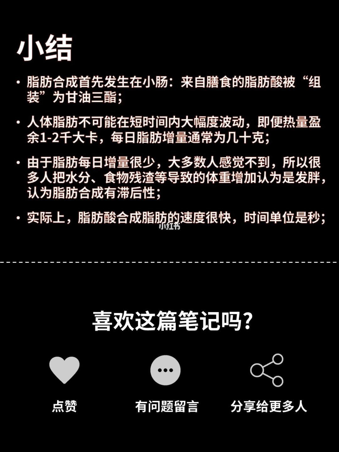 1. 网上经常有人说脂肪合成有滞后性,有时吃高热量食物不会立刻发胖,而是过一段时间体重才增加。