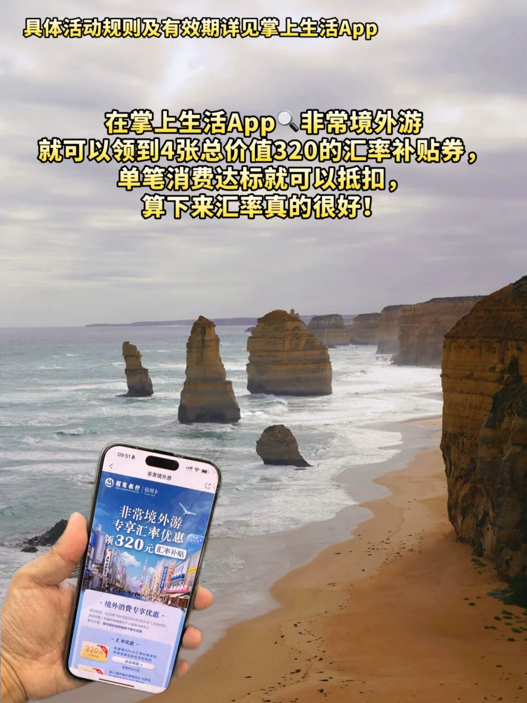 ‼️在掌上生活App🔍非常境外游 就可以领到4张总价值320元汇率补贴券包,芯片信用卡还能额外领20元券包,单笔消费达标就可以抵扣,算下来汇率真的很好