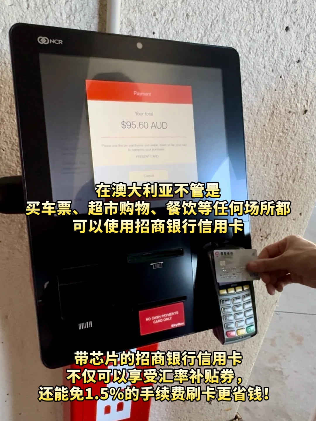 澳洲旅行很少用现金,我们一般都会使用信用卡支付,大家要是来澳洲旅游可以带上一张招行芯片信用卡!招行芯片信用卡能免1.5%的外汇兑换手续费,而且现在有汇率补贴活动,刷卡更省钱