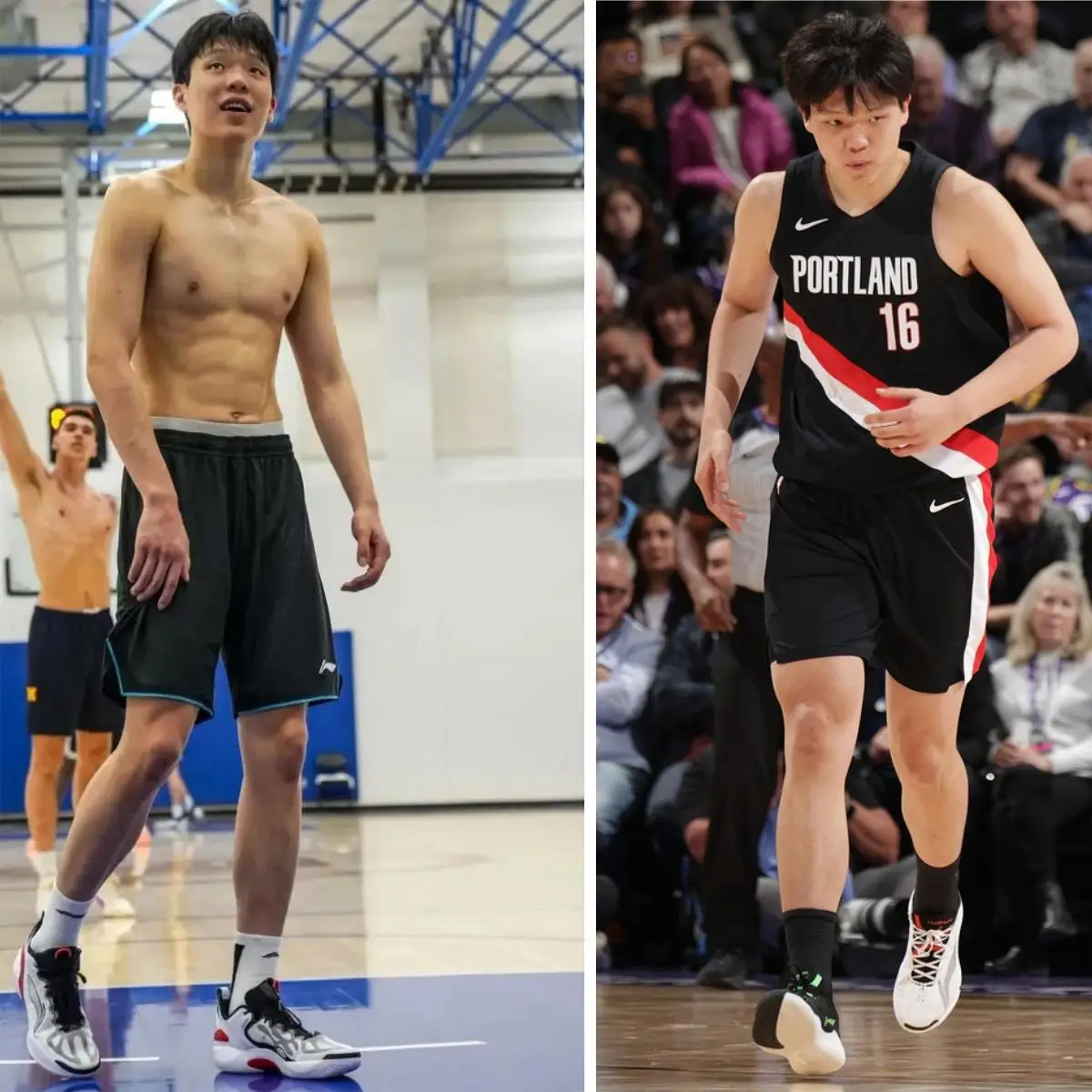 不对比不知道,进入NBA以后小杨确实是胖了。