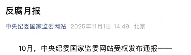 据“中央纪委国家监委网站”微信公众号11月1日消息,10月,中央纪委国家监委网站受权发布通报——