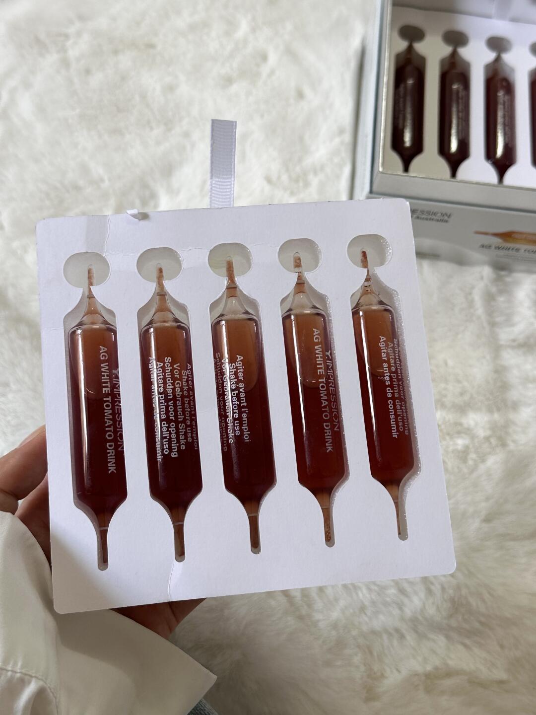 之前换着用美白精华、面膜,钱花了不少,脸该黑还是黑, 还是闺蜜懂我,分享了她在喝的因贝森冰白番茄酵母饮,当时还嘀咕“这玩意儿能行不?”
