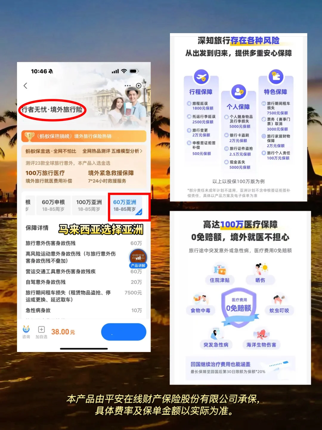 ❷在东南亚旅行如果遇到突发急病,比如吃海鲜后急性肠胃炎等送医治疗这都包含在保险范围内!旅行意外医疗费用补偿高达100万保额,0免赔额!在外国看病很贵,有了它就可以安心治疗了!