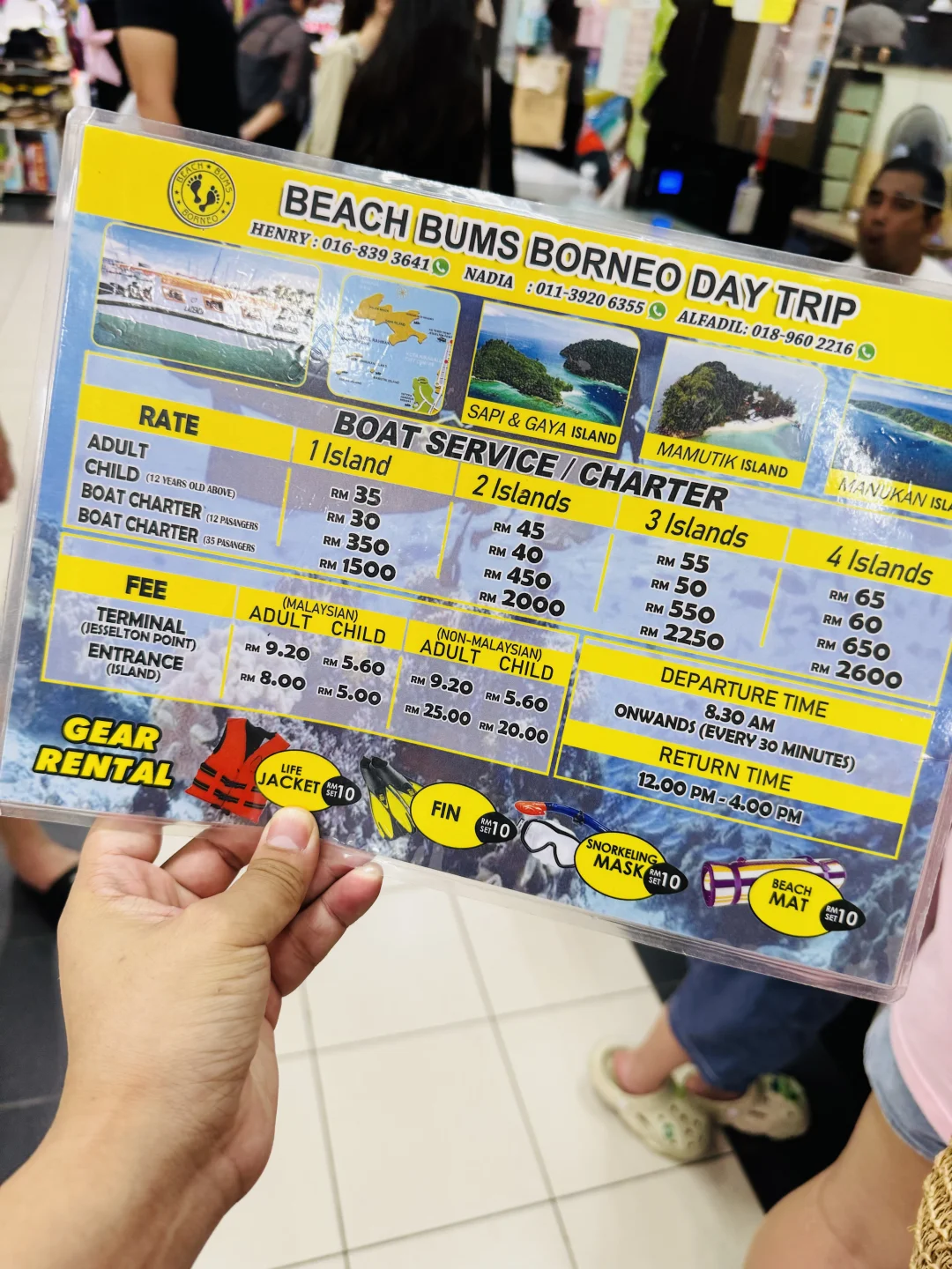 这四个岛比较近,当天早上去报名即可参加!可以选择一天玩1-4个岛,价格如图6!个人建议玩1-2个即可!个人比较推荐沙比岛Spbi