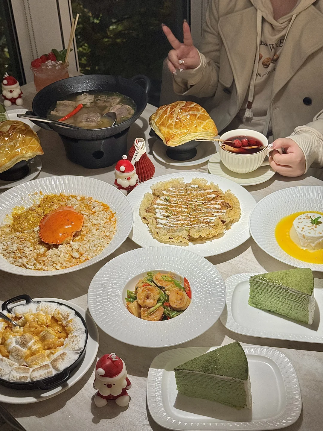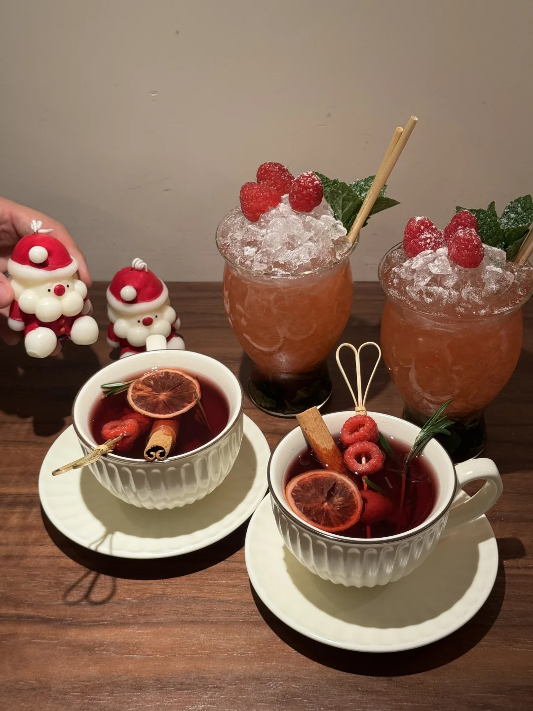 这家环境氛围好 chill~可以🆓领圣诞🎄香薰!!! 热红酒、莫吉托好看又好喝!适合微醺小酌🥂豆香乳酸蛋糕、虾蚝煎、越南河粉…都吼吼吃!!!