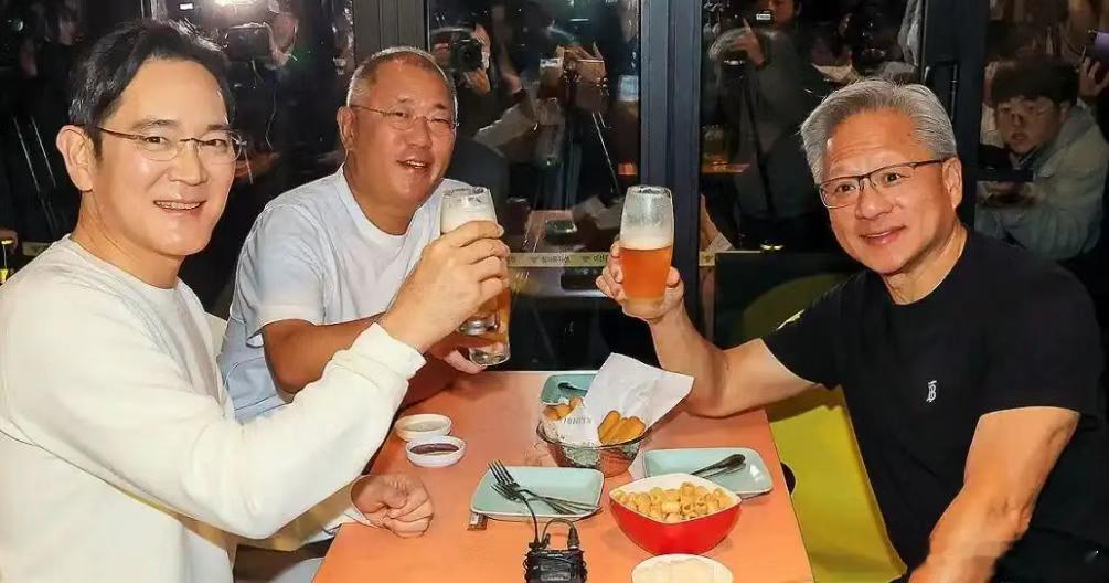 一边和韩国财阀们觥筹交错,甚至喝交杯酒,一边称赞韩国炸鸡世界最好。 所谓人情世故,霍金来了也得敬酒。 情绪价值拉满。 去韩国名义上是推动AI产业,实际上呢? 英伟达并不自己生产显卡,只负责设计,芯片的代工是台积电,HBM显存的代工是三星。 随着国际形势的剧烈动荡,台积电这条线对于英伟达来说,风险越来越大,谁能“顶替”台积电呢? 当然只有三星。这就形势很明朗了。 黄皮衣去韩国有三件事: 一是为了供应链安全,找芯片代工的备胎;