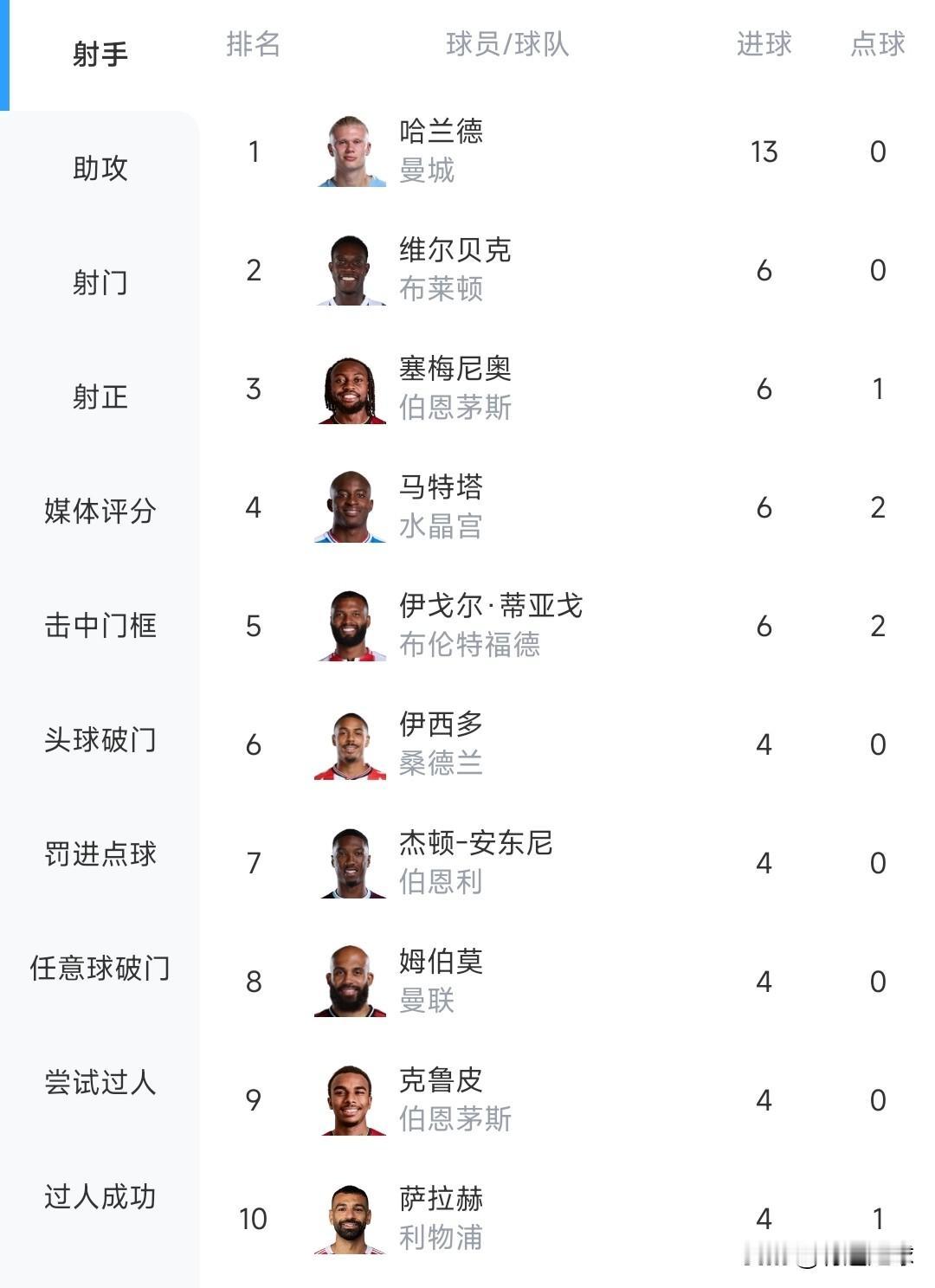 哈兰德、姆巴佩这是断崖式领先吗? 看各自的进球数据,都是13球,分别领先第二名7球、6球。 各自联赛的进球剑指欧金靴,那么,在欧冠赛场的比赛则可能是金球奖的最后赛场。