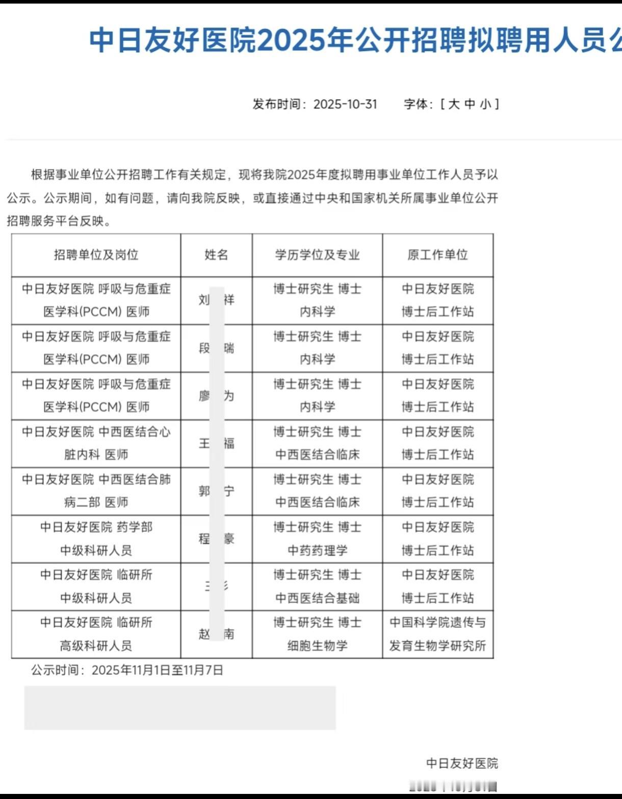 看看北京三甲医院都招什么样的人才?看看中日友好医院的招聘结果你就知道了。没有博士