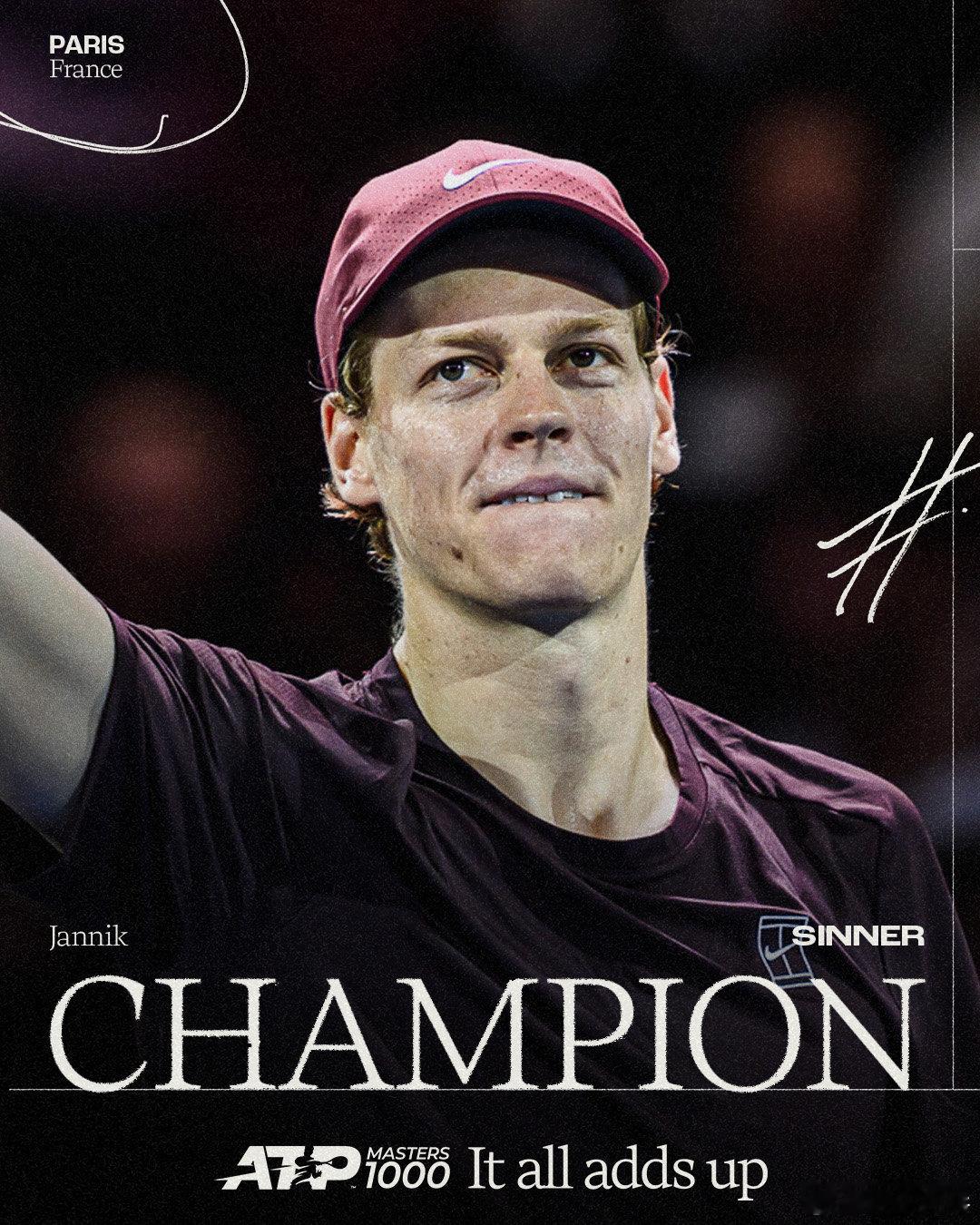 辛纳赛季第5冠辛纳首夺巴黎大师赛冠军