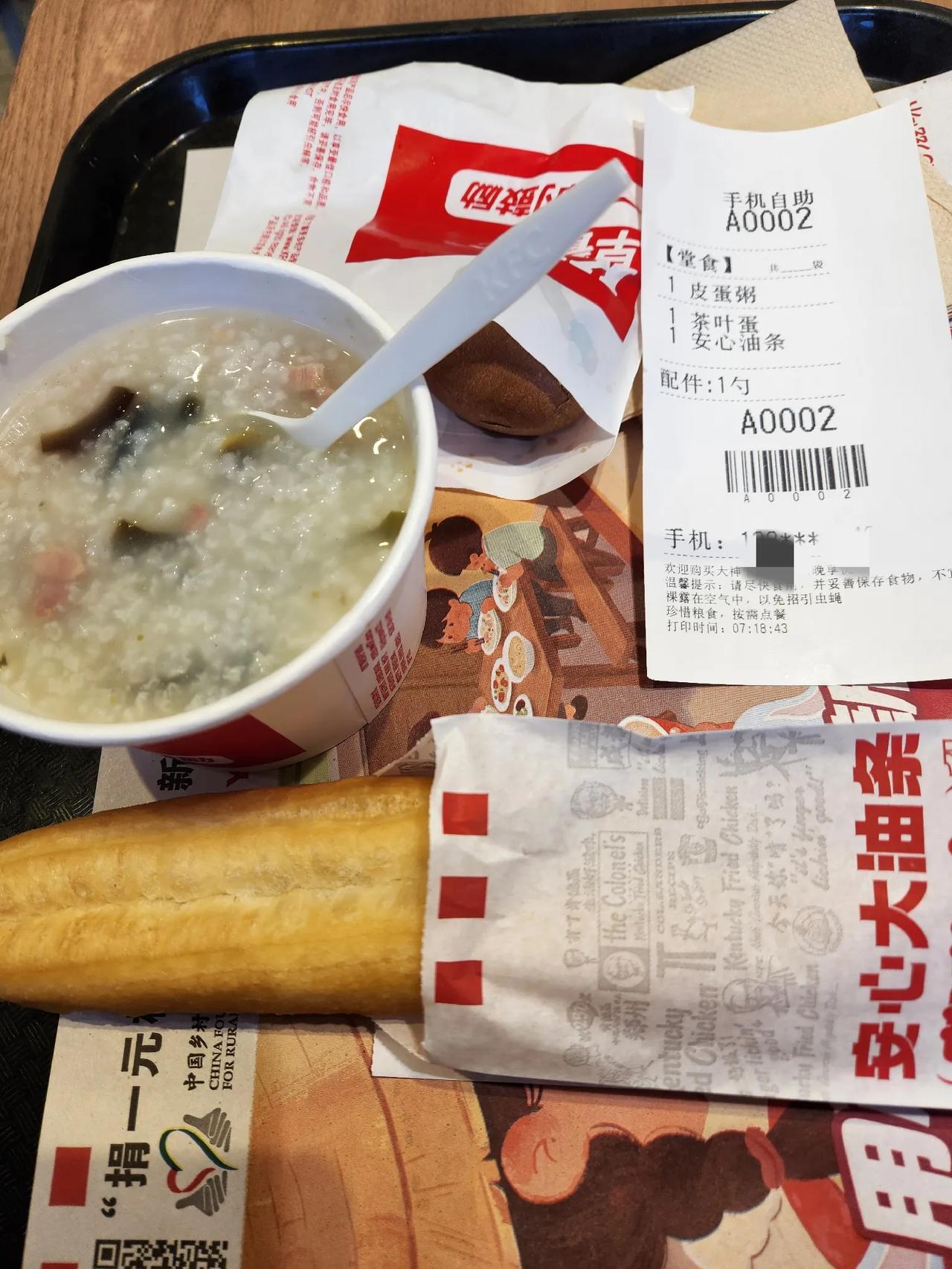 早上7点,肯德基就开始营业了。 大约有三名员工在忙碌,客人不太多,但陆陆续续也有,还有外卖。 费用是外面小店的三倍,但干净卫生,原材料让人放心。 我估计肯德基卖早餐不赚钱,但可以多排一点员工来上班,也挺好的。 肯德基