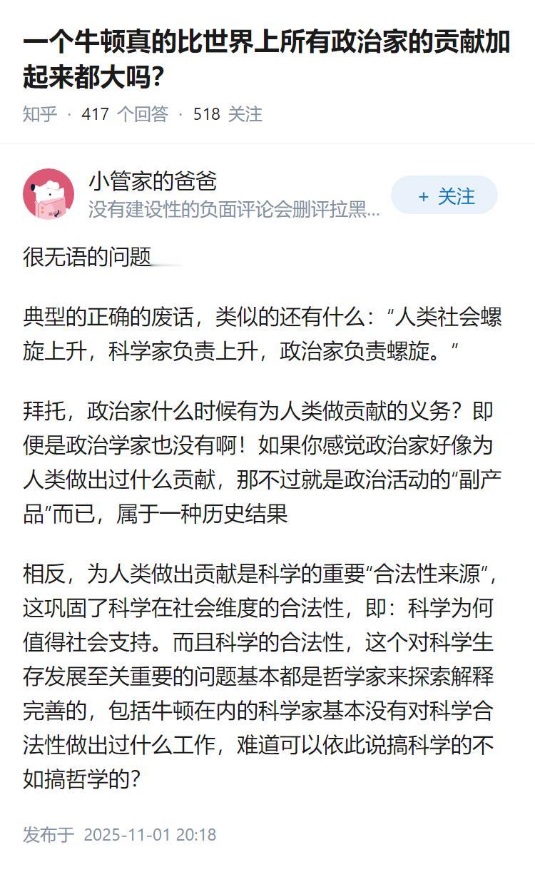 一个牛顿真的比世界上所有政治家的贡献加起来都大吗? 一个牛顿真的比世界上所有政治