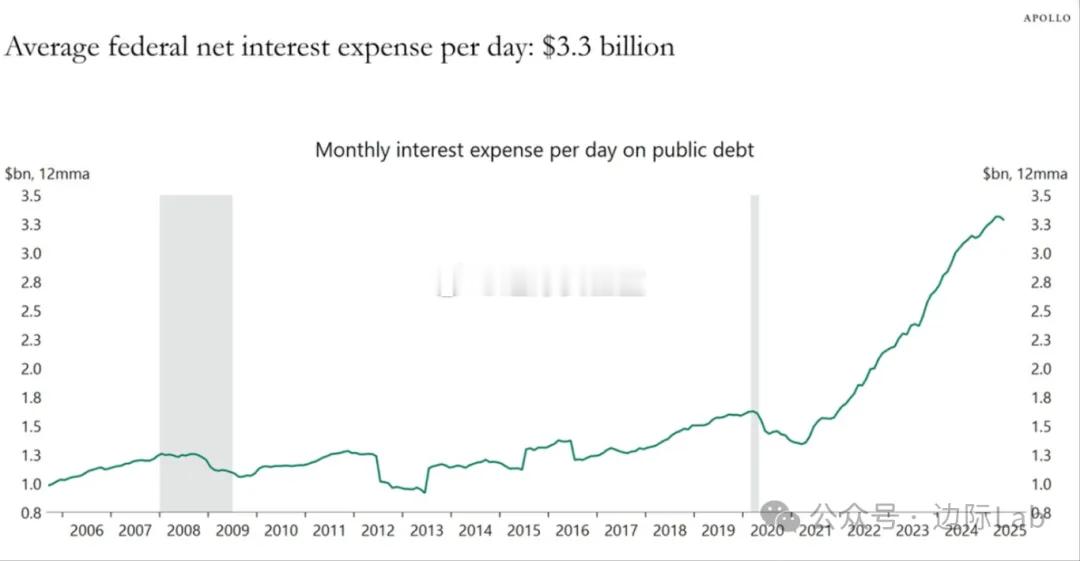 美国政府需要在未来12个月内对高达9万亿美元的付息债务进行再融资,其每日支付的利