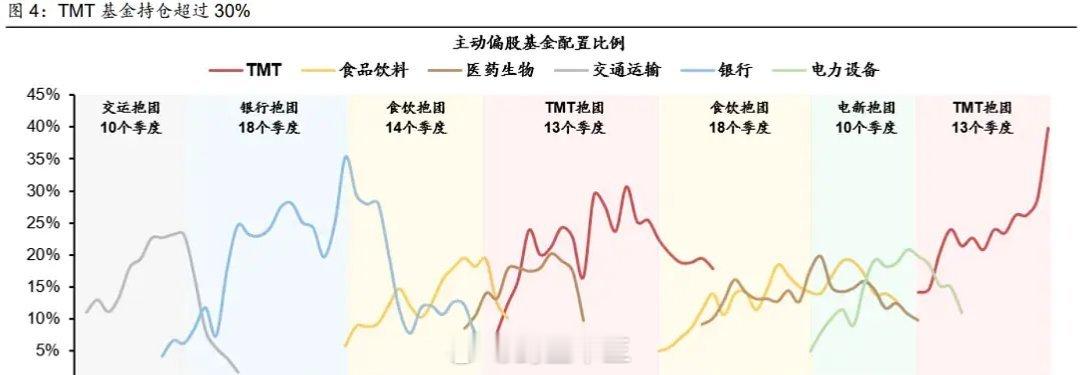 25年三季度公募基金的持仓数据,发现公募持有科技股的仓位已经逼近40%,然后贴了一张对比图,认为机构在科技股的抱团已经达到了极致,到了非常危险的一个阶段。