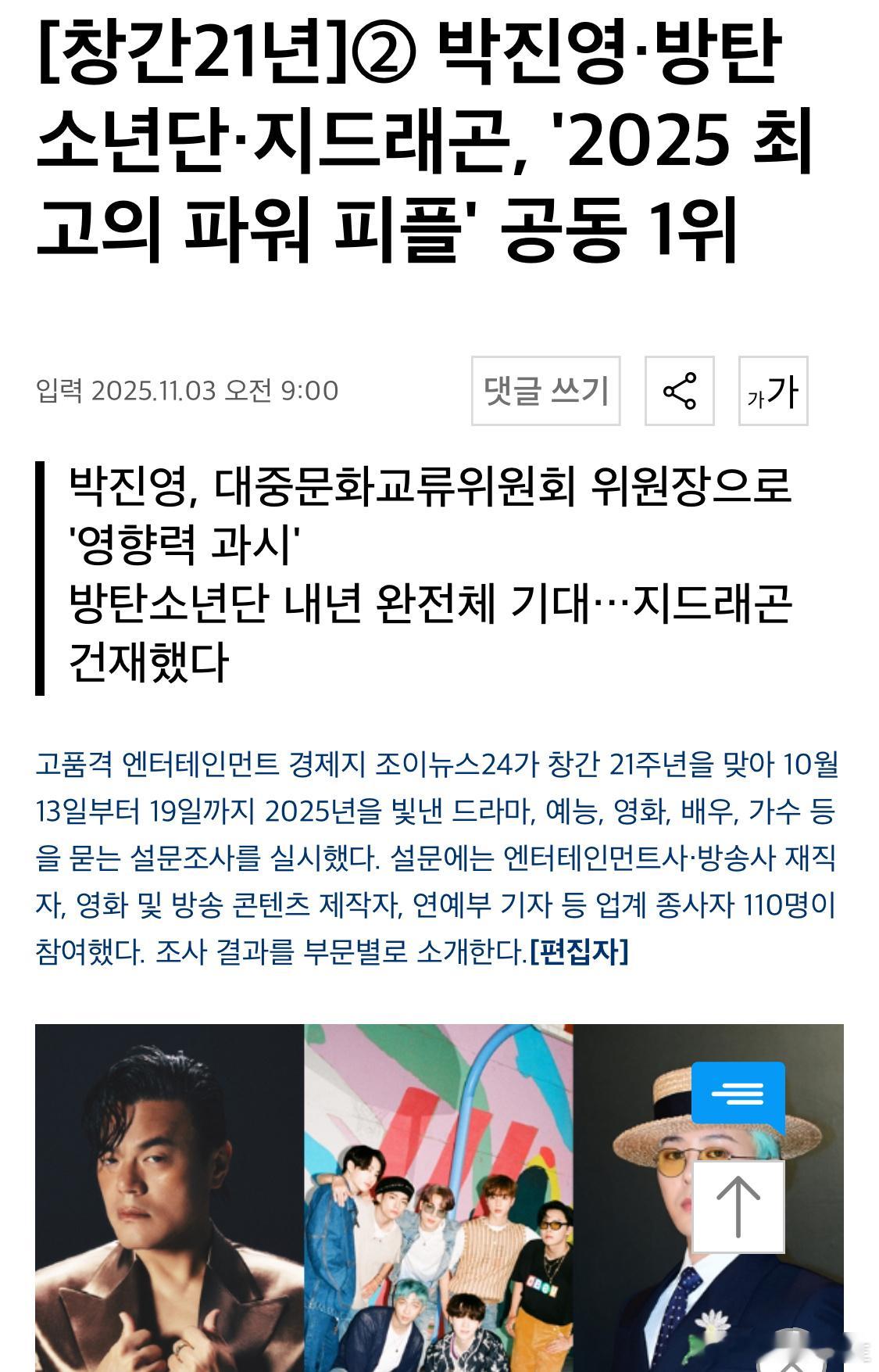 朴振荣 防弹少年团 G-Dragon 权志龙 11 票并列一位