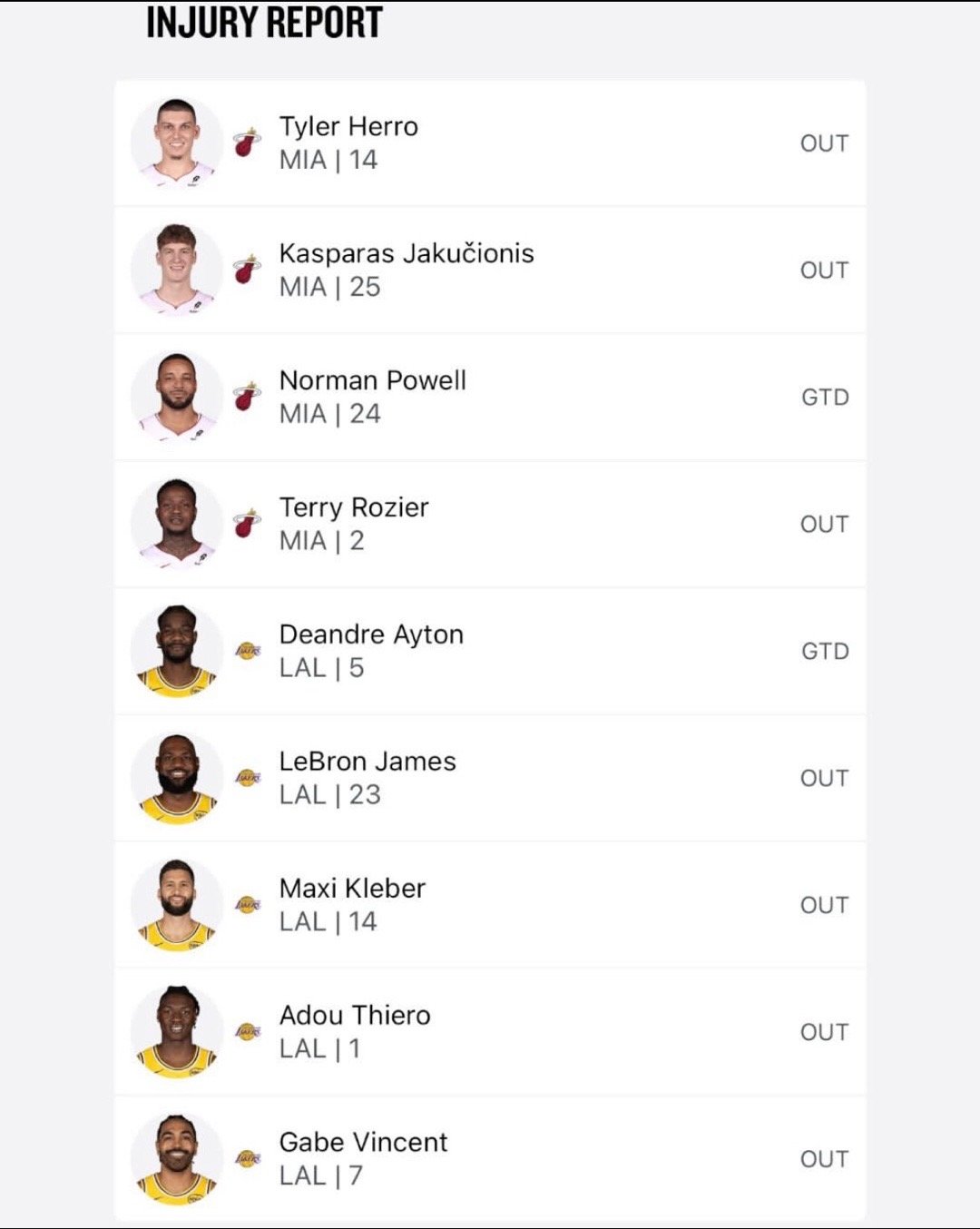 热火的伤兵名单看起来也是很多人,就趁这机会拿下首个三连胜吧!热火vs湖人