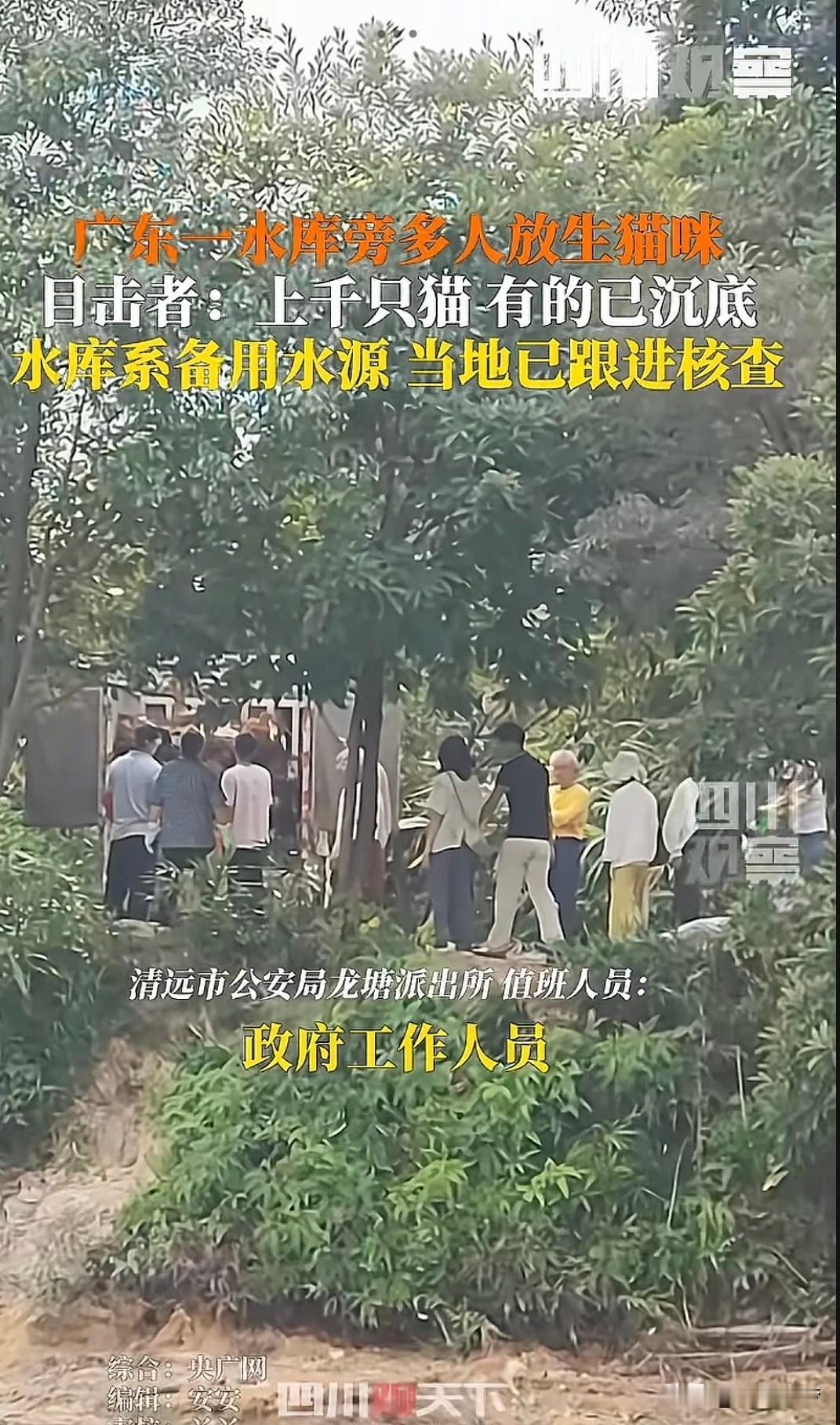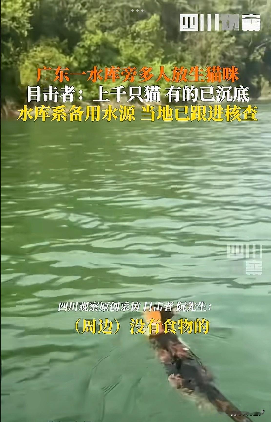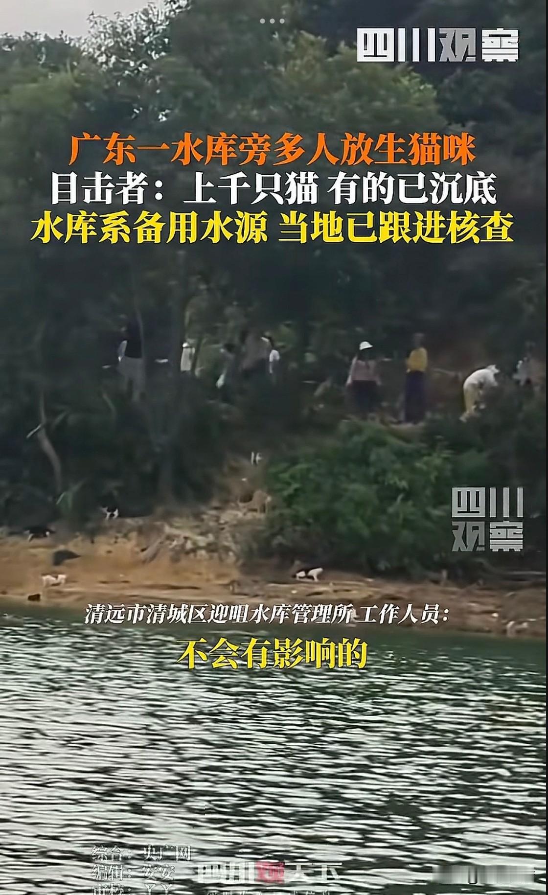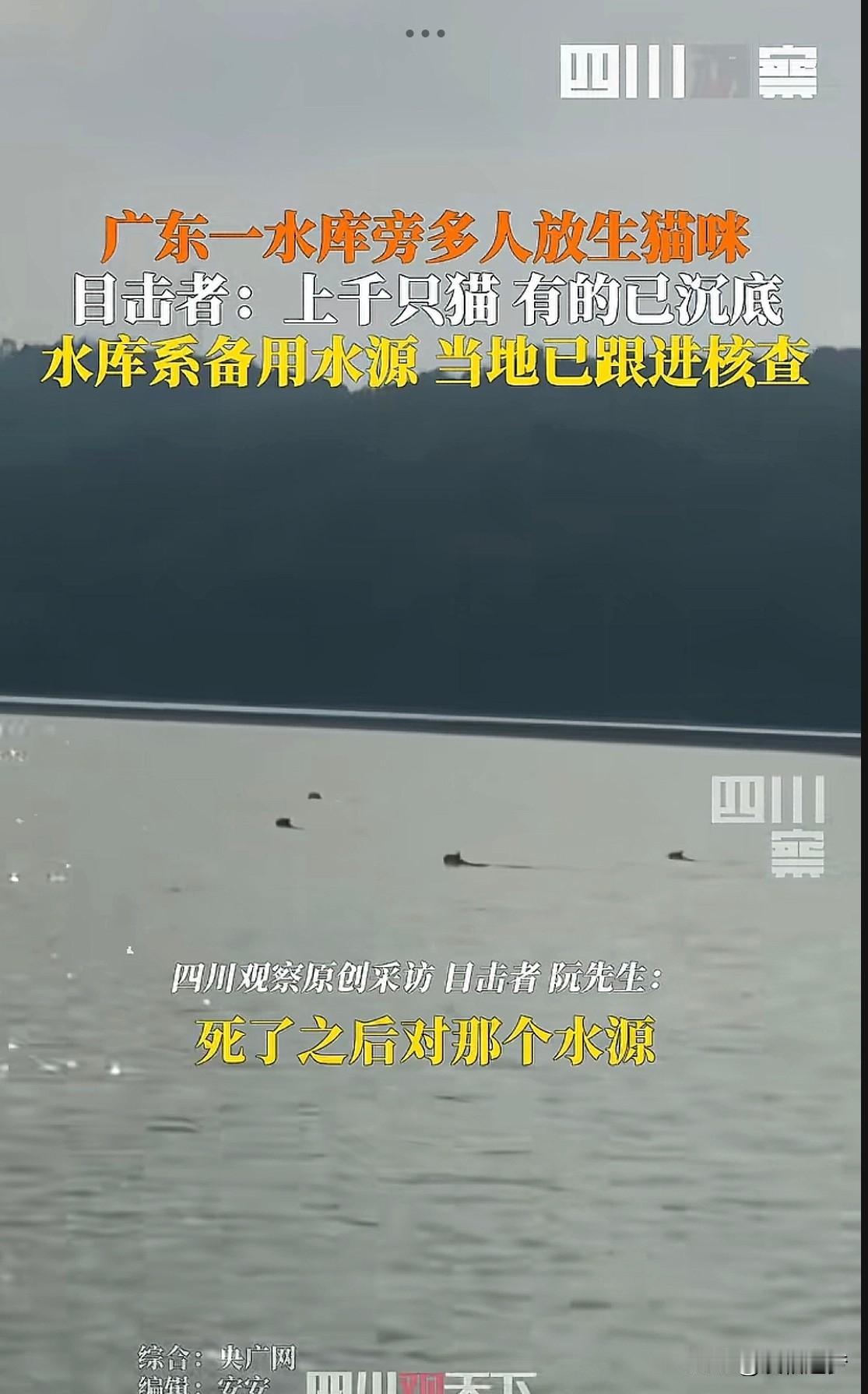 “太触目惊心了!”广东,一男子遛弯时,突然发现水库边,上百只猫咪正被人硬赶下水,有的甚至已经挣扎沉了底。男子连忙冲过去阻止,结果对方态度嚣张,不但没有理会,还要把三大卡车流浪猫批量放生。 看着这群人毫无顾忌的从卡车上抬下笼子,看似是放生,实则往水里驱赶,或许知道自己这样做太缺德了,竟然还在现场放了大悲咒,典型的又当又立! 根据四川观察,11月1日报道,这件让人气愤的事就发生在当地一水库岸边。 男子透露,当时看到猫咪的数量吓了一跳,足足有上千只,附近没有人烟,树林里也没有食物,猫咪本就怕水,或许是长时间饥饿,很多猫到了河中间体力不支沉了下去。 可放生者似乎像看不到一样,仍旧继续打开猫笼驱赶,说白了,这根本不像是常规放生,而是找换个地方让它们活不下去。 可这里毕竟是水库,是饮用水的一部分,男子多次劝说无果,既担心猫咪的生命安全,又担心死了的猫咪将来会污染水源,当场报了警,很快当地警方赶了过来,阻拦了这些人进一步的行为,具体处理结果相信很快就会公布于众,同时也会搞清楚猫咪的具体来源。 有网友惊讶又愤怒:把猫往水库里面放?这哪是放生啊,这是妥妥的杀生啊! 也有网友说:多亏了是被男子发现了,人在做天在看,连老天爷都看不下去了,派人来救那些“毛孩子”了。 说实话,看完真的气到发抖!放生鱼虾蟹在水里还算正常,本来是积德行善的事,可这群人的行为,更像是遇到了什么事,不顾污染饮用水源的风险,把上千只猫往绝路上逼。也希望警方查出真 相,猫咪的命也是命,更何况是上千只猫的生命。