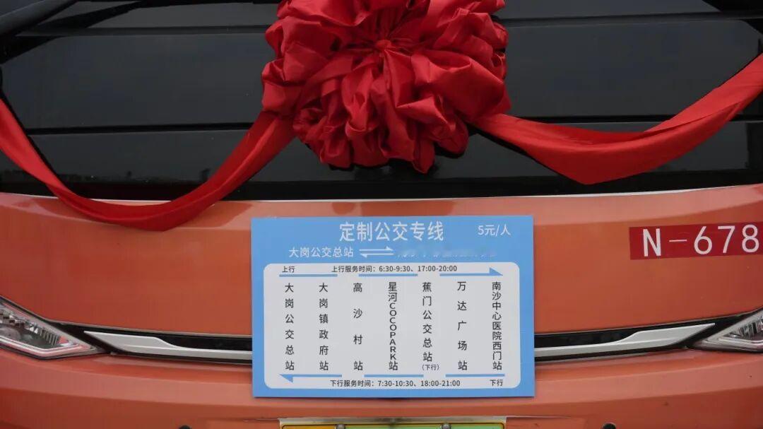 【大岗到南沙市区更快啦!】10月30日“大岗公交总站至南沙中心医院定制公交专线”发车仪式在大岗公交总站举行。可以看到本次公交每天限时出发,早上为6:30到9:30,下午为17:00到20:00,十分适合上班通勤或者假日购物或看病之类的用途。大岗公交总站至南沙万达广场的通勤时间,从原来的1个半小时压缩至约45分钟,全程则是需要50分钟左右。发车间隔为30分钟/班。 站点方面,分别为大岗公交总站,大岗镇镇府,高沙村站,星河cocopark,蕉门公交总站,万达广场站,南沙中心医院西门。 不过票价方面就不太友好了,单程要5块钱,来回的话就要10块钱了!