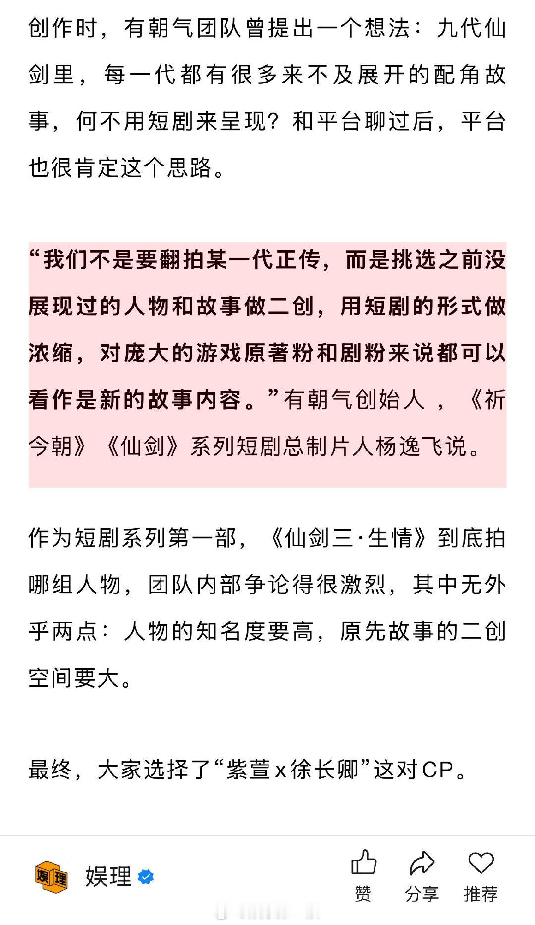 短剧仙剑将拍龙葵龙阳番外制片人谈仙剑短剧主角是紫萱徐长卿短剧《仙剑三·梦千年