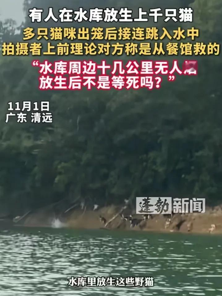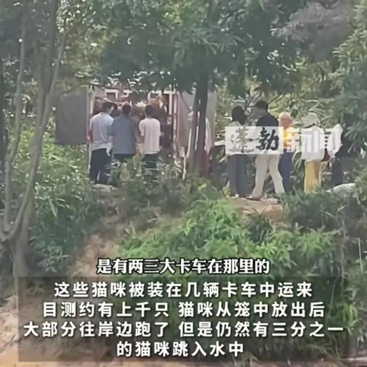 水库放生上千只猫这事,背后可能没那么简单。 广东清远的迎嘴水库,有网友拍到有人