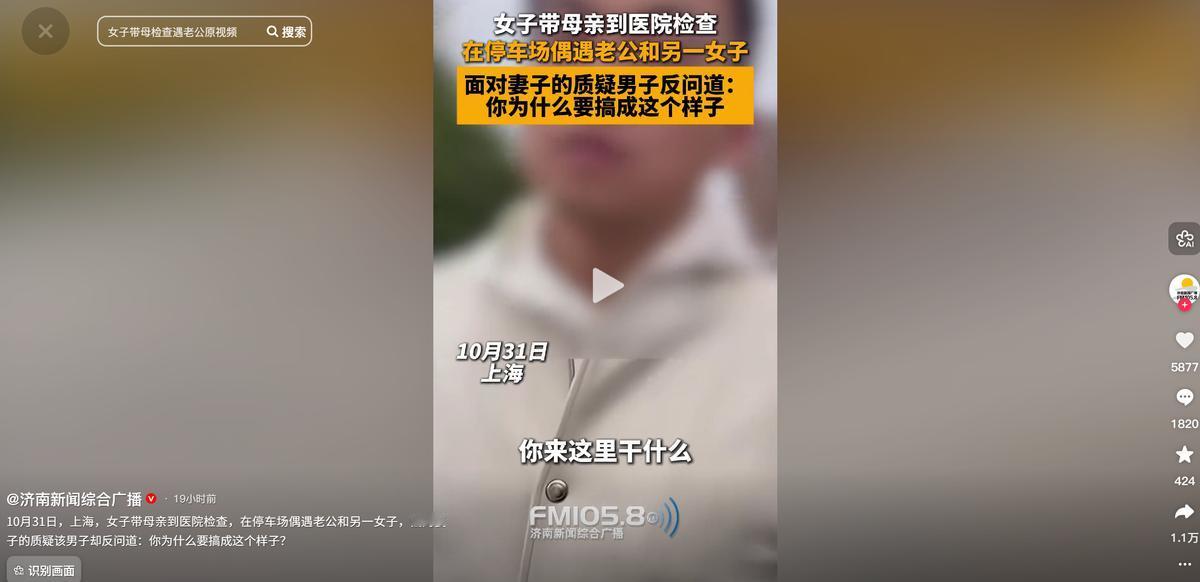 “出轨抓现行了!”上海,一医院停车场,一位带着母亲看完病的妻子,意外发现丈夫的车