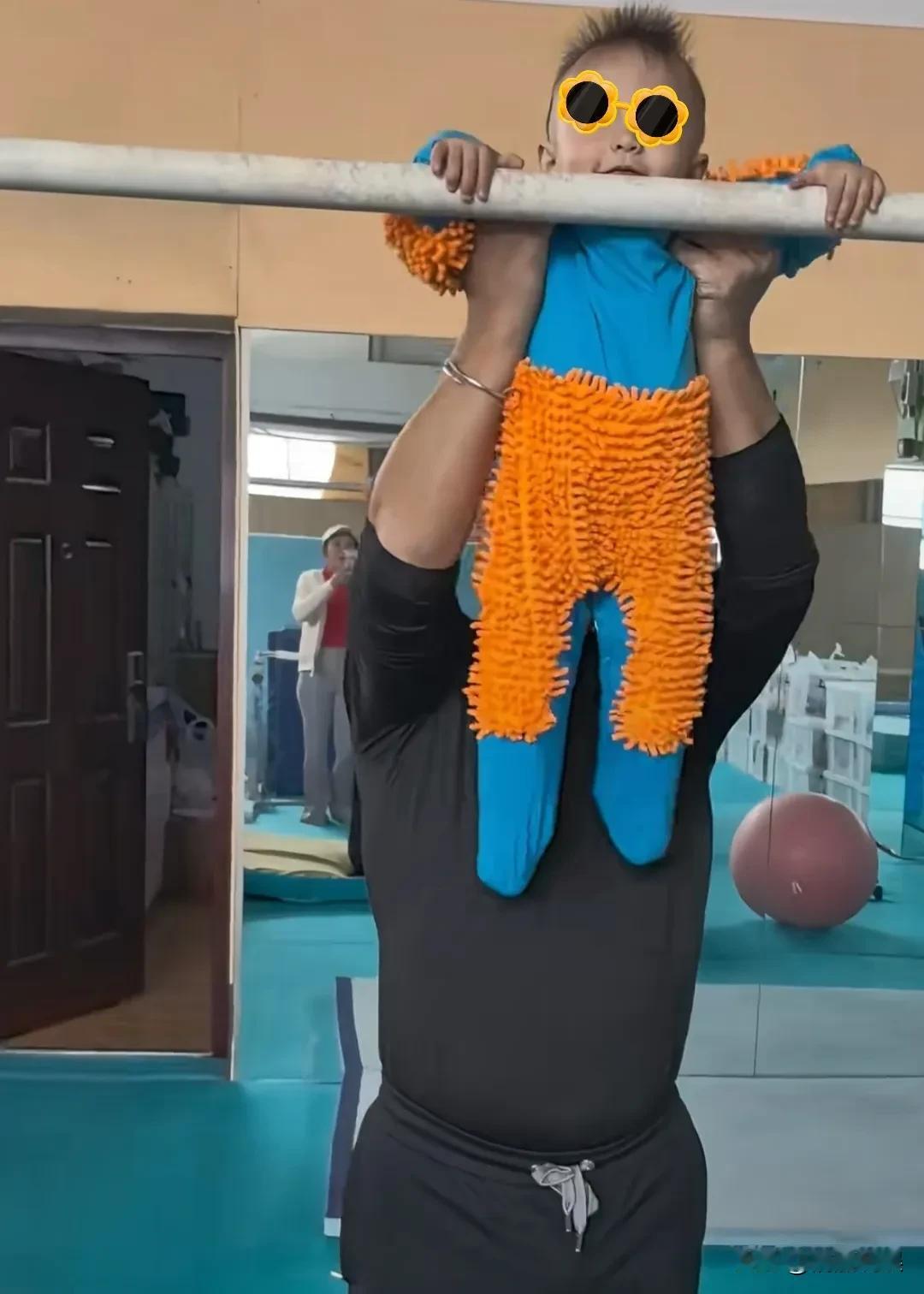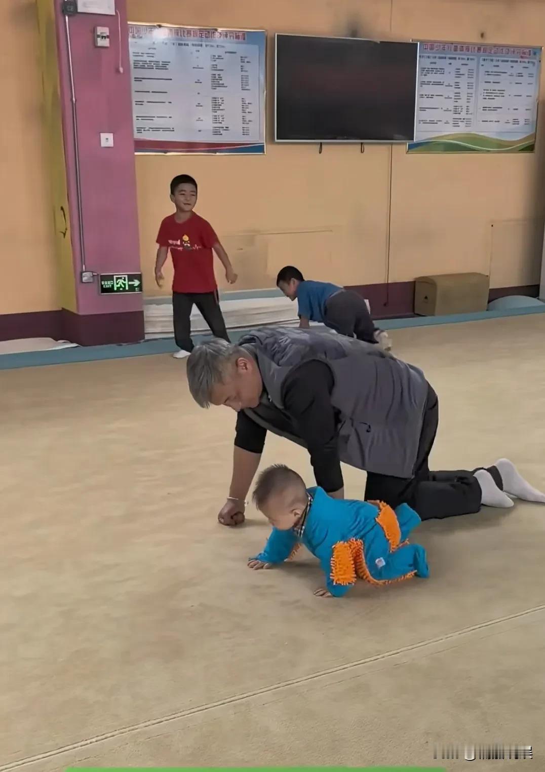 奥运冠军李大双现身湖北体操学院,52岁的他带着自己9个多月的儿子,体验体操运动。[呲牙] 李大双个子不高,身材保养得很好,不弯腰驼背,也没发福,就是头发花白,看起来挺苍老的。 他带着小宝贝体验各种运动,小宝贝喜笑颜开。可能是基因遗传,看小家伙做吊环,手劲好大,感觉就是不一样! 老来得子,不容易哈,李大双看着儿子健康可爱的样子,笑的乐开了花!