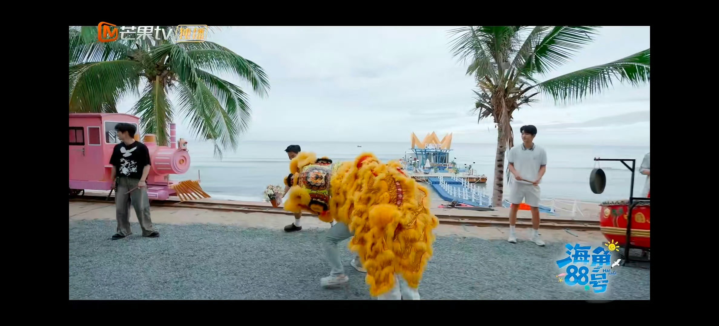 徐志胜舞狮差点舞进海里看《海角88号》,徐志胜舞狮晕头转向,差点入海,太搞笑啦?